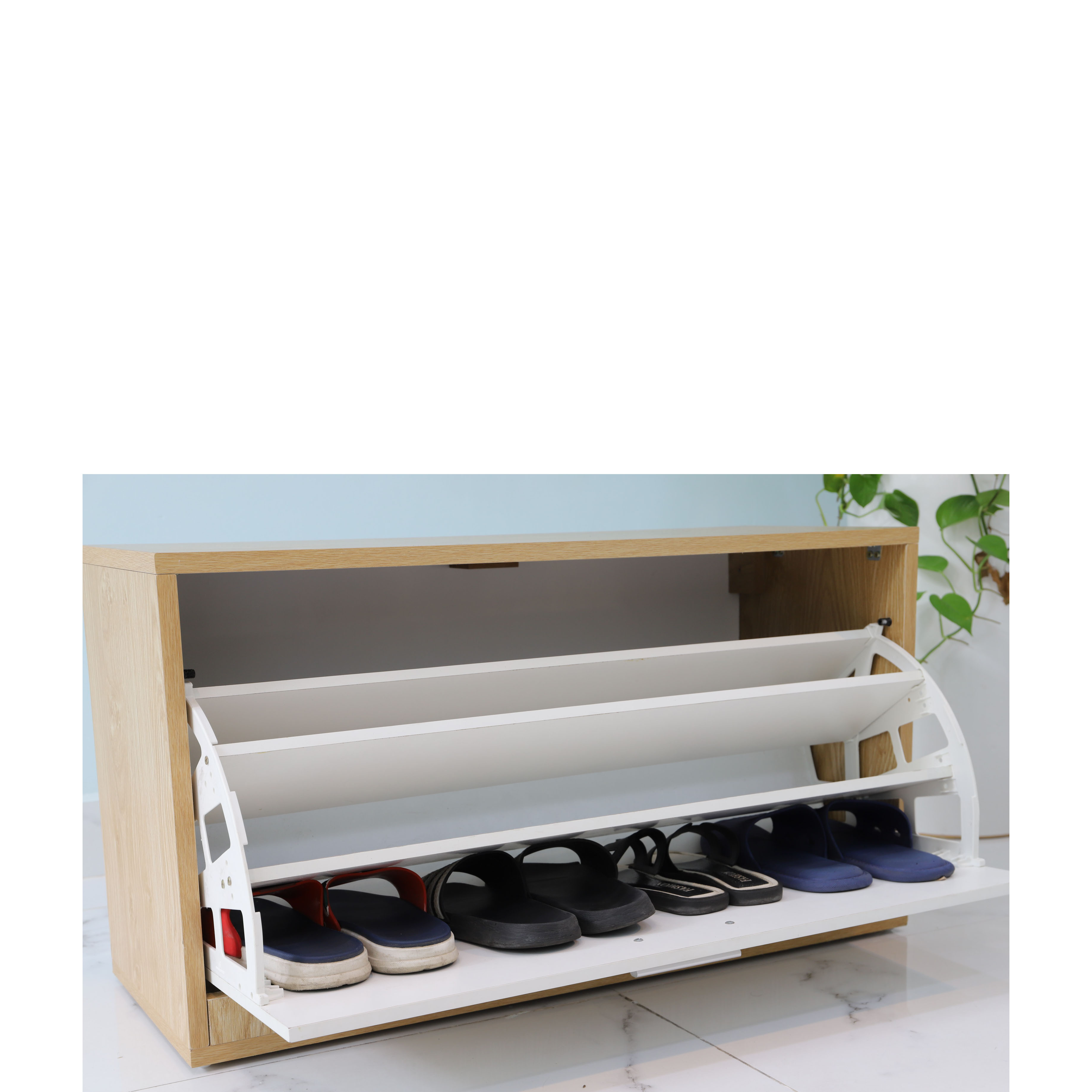 Hình ảnh thực tế tủ đựng giầy dép thông minh cánh lật 3 tầng gỗ công nghiệp TGD04