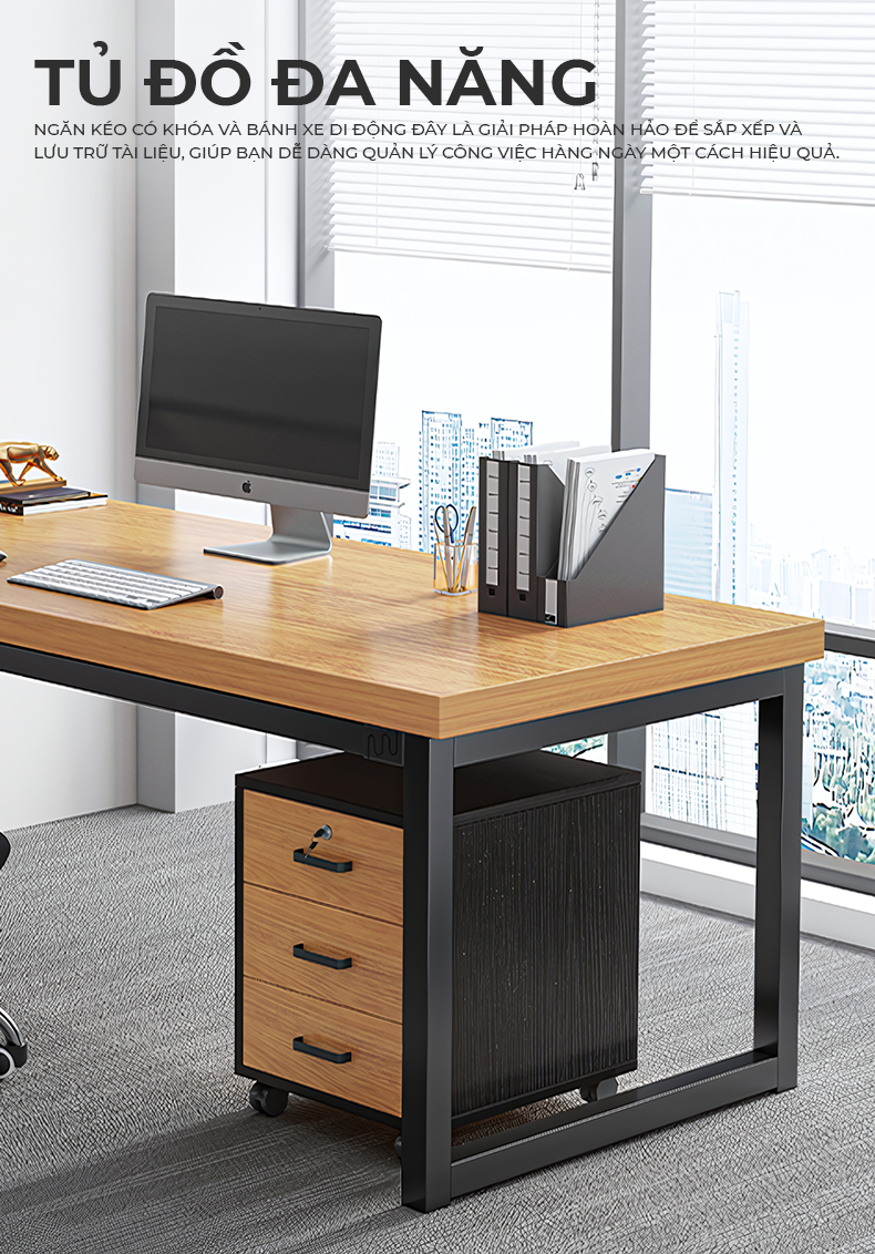 Tủ tài liệu 3 ngăn kéo, có bánh xe.