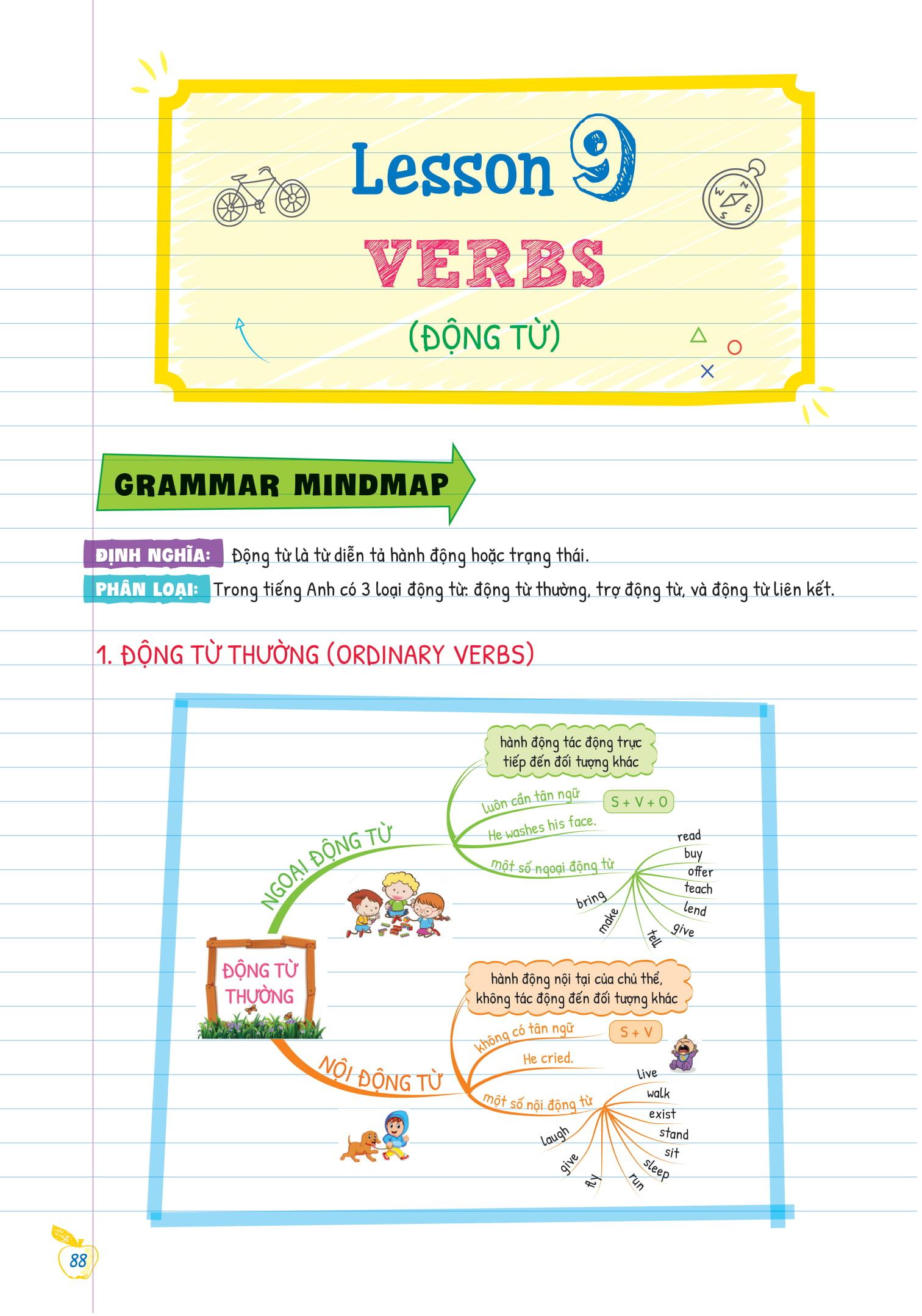 Phần lý thuyết ngắn gọn, giúp các em học ngữ pháp nền tảng qua Mindmap, có kèm diễn giải lý thuyết và ví dụ cụ thể