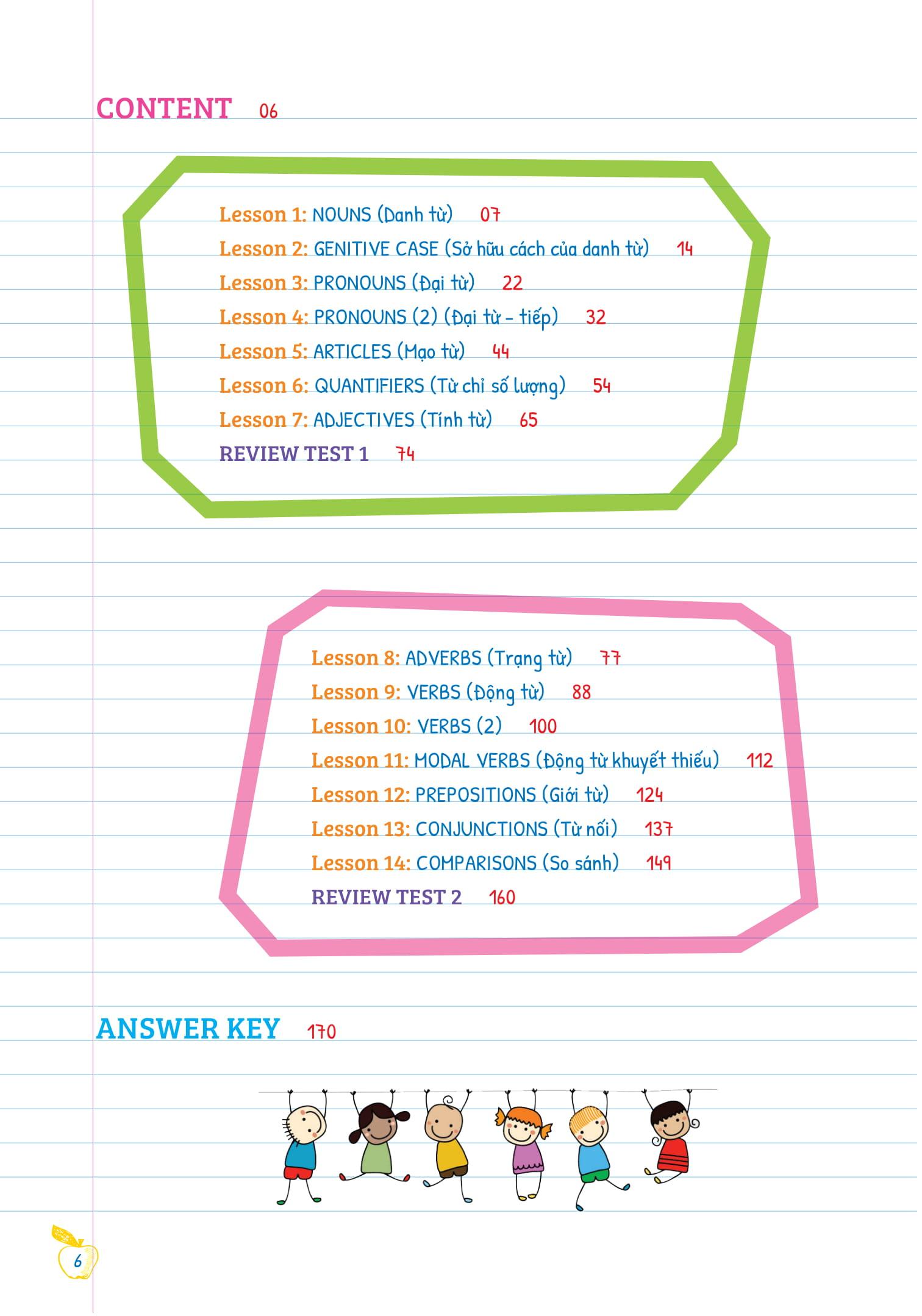 Các chủ điểm ngữ pháp Tiếng Anh cơ bản , cô đọng , dễ hiểu , dễ nhớ -Bài tập thực hành đa dạng kèm hình ảnh minh họa sinh động -Làm chủ ngữ pháp