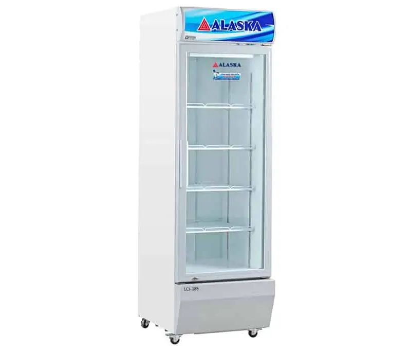 - Tủ mát Alaska 450L LCI-385 có hệ thống sưởi kính bằng khi nóng. Giúp mặt kính luôn trong suốt sáng rõ, giữ nhiệt tốt, nhìn rõ các sản phẩm bên trong Máy nén sản xuất theo công nghệ Matsushita Nhật Bản: