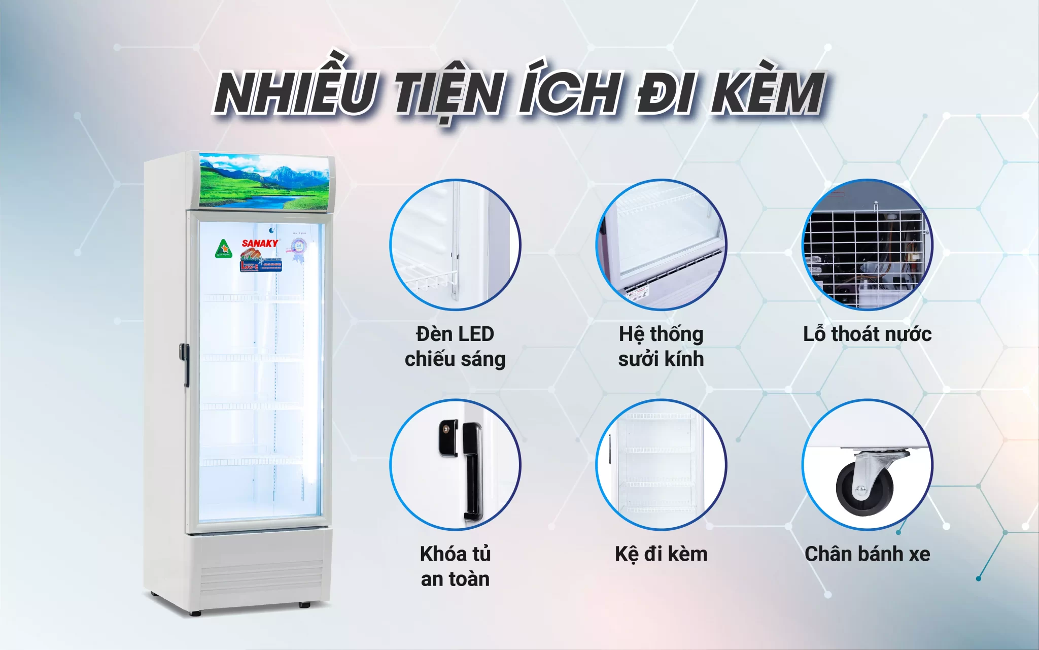 Tủ mát Sanaky được trang bị hệ thống đèn LED dọc bên hông, chiếu sáng mọi ngóc ngách giúp các sản phẩm trưng bày trong tủ trở nên bắt mắt và cuốn hút hơn. Bên cạnh đó, đèn LED còn tiết kiệm điện năng, duy trì tuổi thọ cao và bền bỉ hơn các sản phẩm đèn huỳnh quang hay sợi đốt…mang lại giá trị bền vững cho người sử dụng.