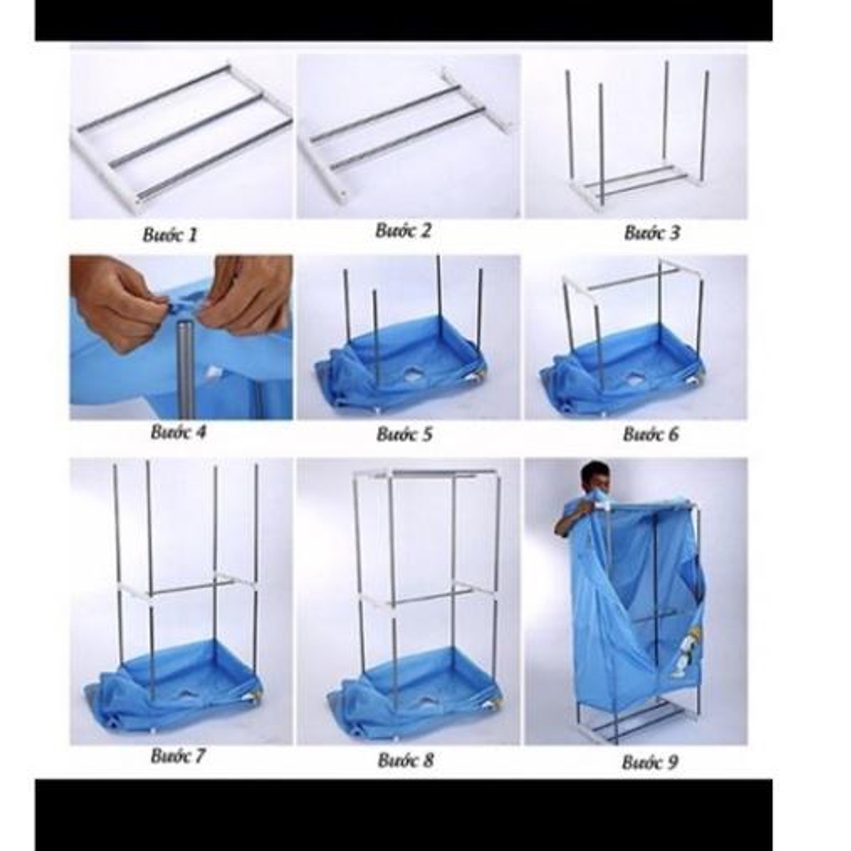 - Tiện dụng: Thiết kế nhỏ gọn, kết cấu nhẹ, dễ tháo rời có thể mang đi du lịch. Môt bộ tủ sấy quần áo bao gồm: