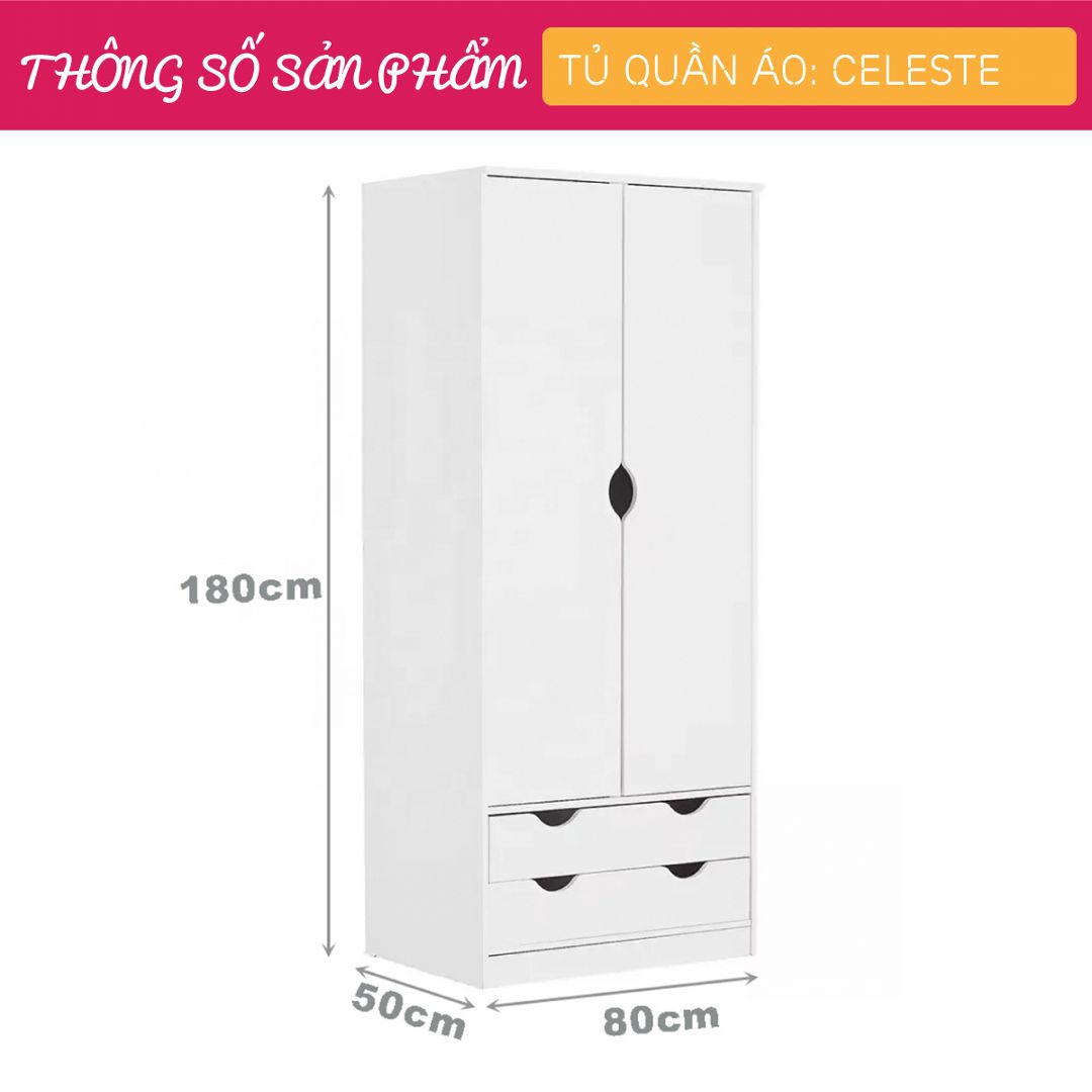 Mua tại TiktokTủ quần áo gỗ SMLIFE Celeste với phong cách đơn giản sẽ là điểm nhấn nổi bật cho phòng ngủ của bạn. Sản phẩm phù hợp với nhiều phong cách nội thất từ hiện đại cho tới cổ điển, vintage. Giường ngủ gỗ SMLIFE được thiết kế cân đối và cực kỳ chắc chắn mang đến nhiều không gian lưu trữ quần áo và đồ dùng. Sử dụng vật liệu ván ép công nghiệp MDF chống ẩm phủ Melamine cao cấp giúp tủ quần áo SMLIFE có độ bền cao, chống trầy và chống ẩm rất tốt. SMLIFE có hàng chục mẫu tủ quần áo với thiết kế mới lạ, độc đáo chắc chắn sẽ mang đến sự ấm áp cho phòng ngủ của bạn.