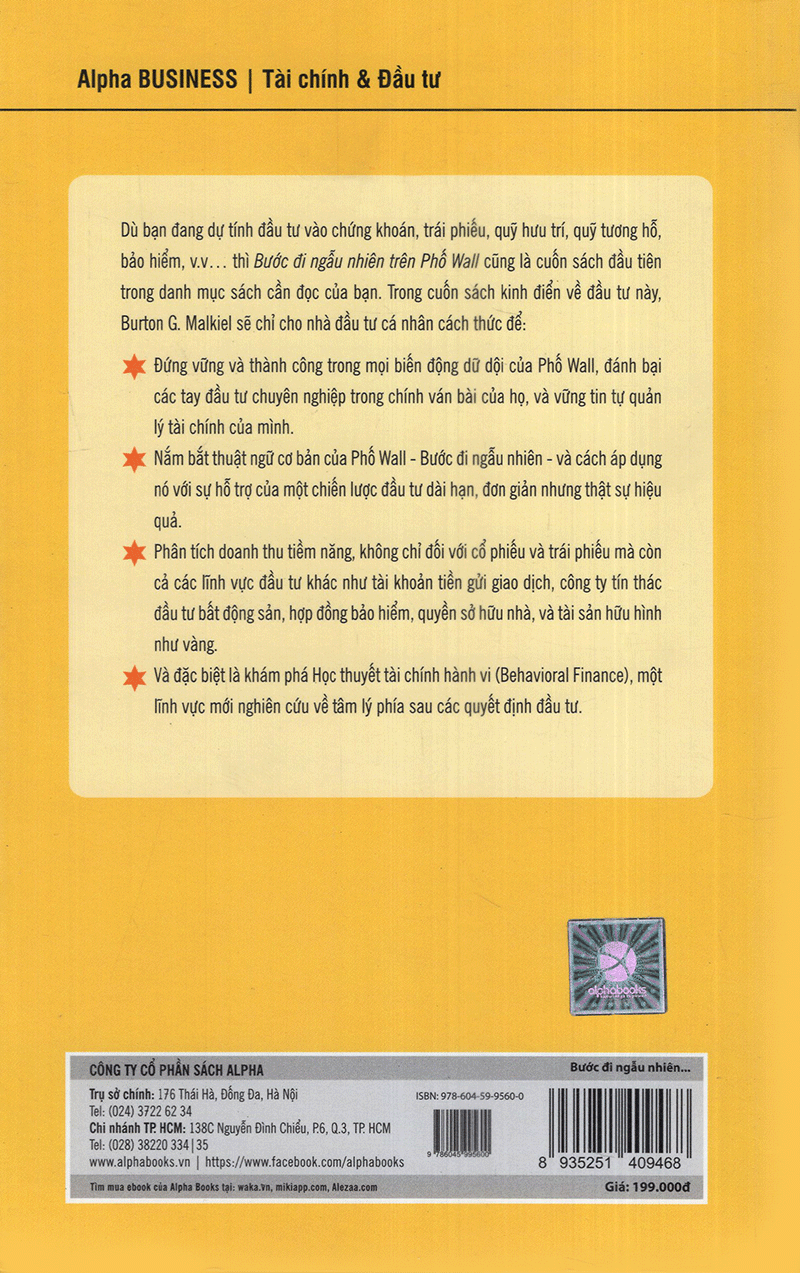 Dù bạn đang dự tính đầu tư vào chứng khoán, trái phiếu, quỹ hưu trí, quỹ tương hỗ, bảo hiểm … thì Bước đi ngẫu nhiên trên Phố Wall cũng là cuốn sách đầu tiên trong danh mục sách cần đọc của bạn.