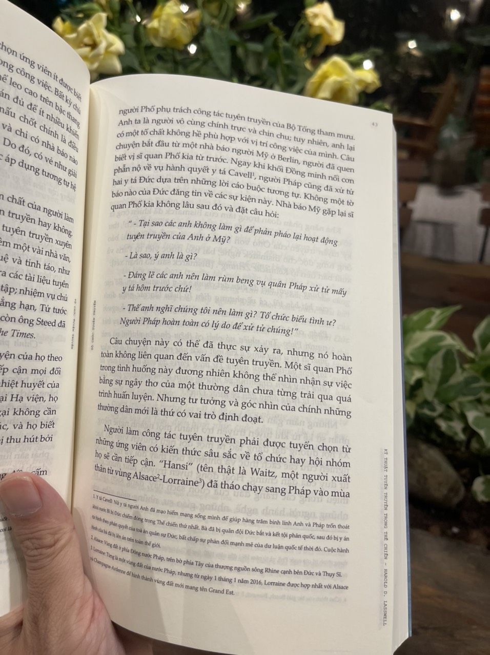 “Kỹ thuật tuyên truyền trong thế chiến” của Harold D. Lasswell tập trung vào việc phân tích định lượng và định tính nội dung tuyên truyền được các bên sử dụng trong hai thế chiến. Từ đó, ông đưa ra một số kết luận nổi bật, giúp người đọc hiểu rõ hơn chính sách tuyên truyền ảnh hưởng đến mọi khía cạnh của cuộc sống xuyên suốt thời chiến cũng như kết quả trực tiếp trên chiến trường như thế nào. Ngoài phân tích chuyên môn, Harold D. Lasswell còn sử dụng những phân tích liên ngành từ xã hội, lịch sử, tâm lý… nhằm lý giải cho sự ra đời cũng như thành bại của từng chính sách. Qua công trình nghiên cứu của Harold D. Lasswell, bạn đọc có thể tìm thấy những khuôn mẫu cũng như mô hình sơ khai sẽ đóng vai trò quan trọng trong quá trình hình thành lên nền tảng truyền thông hiện đại.