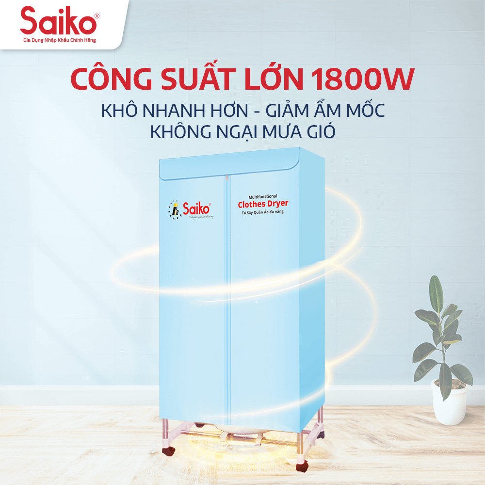 Sấy Khô Nhanh Chóng, Đảm Bảo Quần Áo Luôn Thơm Mát và Khô Rộng Cả Mùa Mưa - Tủ Sấy Quần Áo Đa Năng Saiko CD-1900 Gia đình từ 2-4 người luôn đặt ra câu
