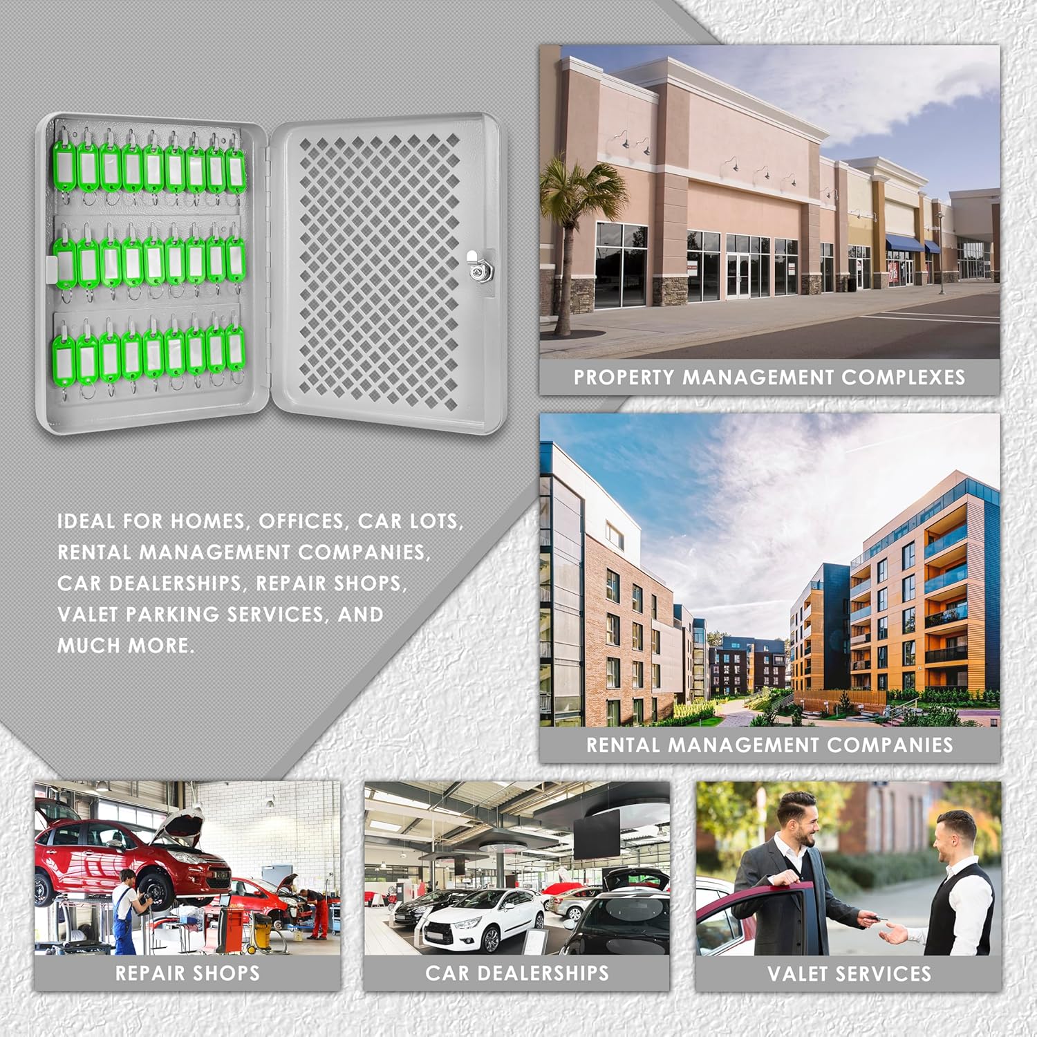 An ninh là tối quan trọng và giá móc treo chìa khóa chỉ cung cấp quyền truy cập cho những cá nhân được ủy quyền. Những tủ đựng chìa khóa này là giải pháp nhỏ gọn nhưng rộng rãi để duy trì trật tự trong hệ thống quản lý chìa khóa của bạn. Cho dù sử dụng cá nhân hay chuyên nghiệp, bộ sắp xếp này đều cung cấp cả chức năng và bảo mật để đơn giản hóa các nhiệm vụ liên quan đến chìa khóa của bạn.