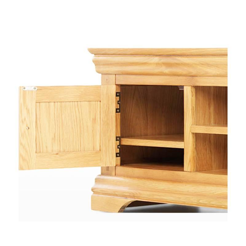 Là sự kết hợp hoàn hảo giữa sức quyến rũ vượt thời gian với tính thực dụng hiện đại, mẫu tủ TV gợi nhớ đến phong cách cổ điển Pháp thế kỷ 19. Thuộc bộ sưu tập Victoria đặc trưng bởi mái vòm và những đường cong duyên dáng. Chính vì thế, nếu không có chương trình gì hay trên TV thì chiếc tủ này cũng giúp bạn có thứ để ngắm nghía, chiêm ngưỡng. Hai hộc với kệ di động để cất giữ đồ dùng không muốn trưng bày, còn bề mặt và các ngăn chính giữa sẽ giúp bạn để các thiết bị âm thanh giải trí hay những đồ trang trí khác. Chất liệu gỗ sồi trắng Mỹ nhập khẩu, có giá trị kinh tế cao và được chế tác hoàn toàn thủ công bởi những người thợ lành nghề. Toàn bộ bề mặt được sơn phủ PU kỹ càng, giữ nguyên được vẻ đẹp của vân gỗ, đồng thời bảo vệ lớp gỗ lâu bền trong các điều kiện khí hậu khác nhau
