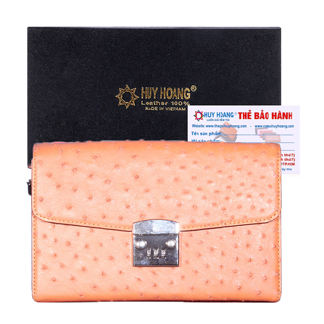 Túi cầm tay nữ Huy Hoàng da đà điểu màu đen, nâu đất, vàng bò, nâu đỏ 6451-52-53-54-55-56