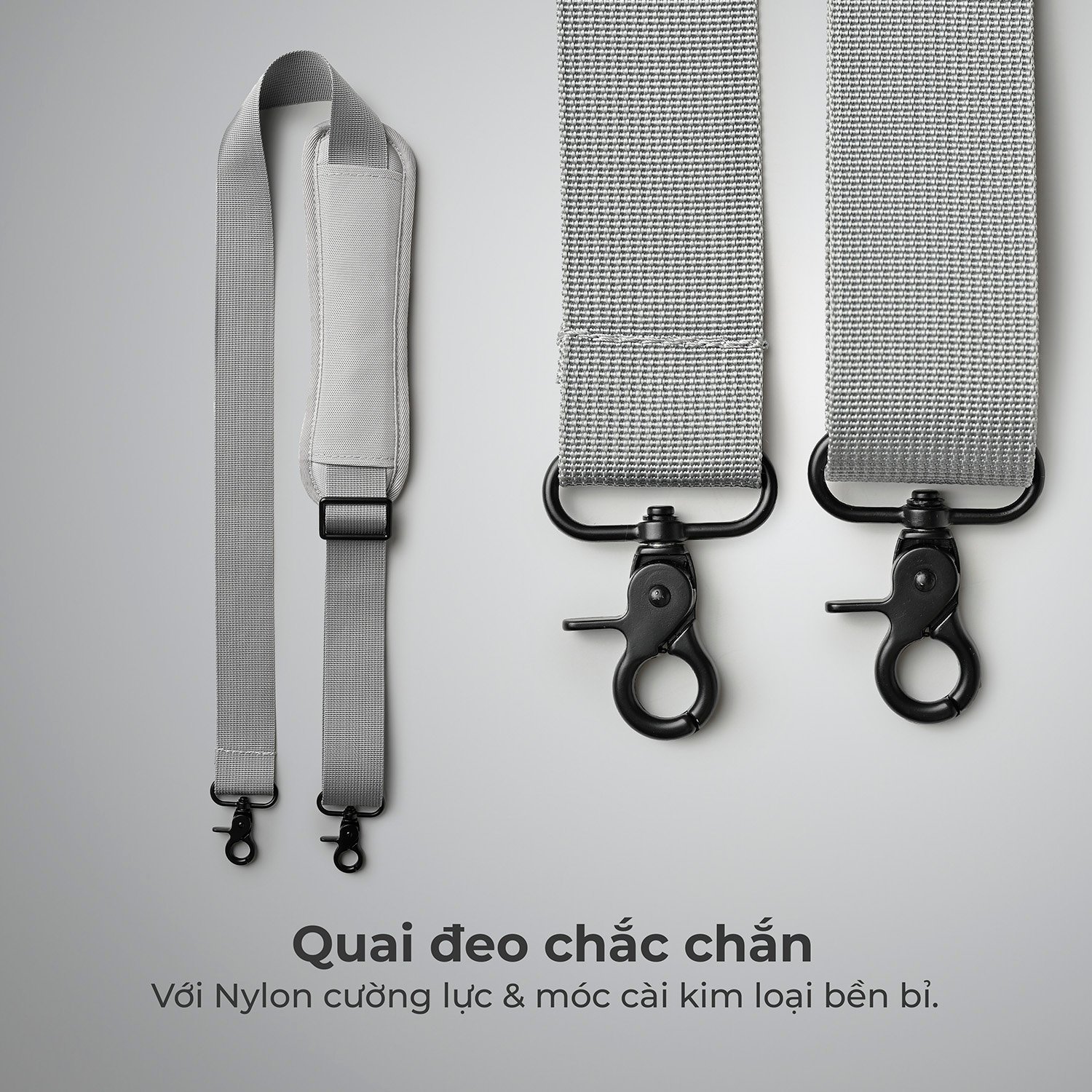- Chất liệu vải cao cấp chống bám bụi, hạn chế thấm nước, siêu bền bỉ - Thiết kế quai đeo có thể tháo rời, quai xách có thể ẩn vào trong khi không sử