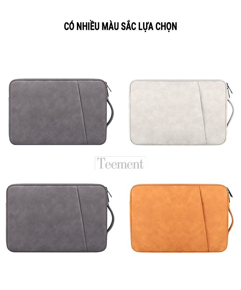 Túi Chống Sốc Laptop Teement TM01 2 Ngăn Có Quai Xách Đứng, Vân Da Mịn Chất Liệu Da Chống Thấm Nước Bảo Vệ Cho Macbook, Laptop, 13 Inch, 14 Inch, 15 Inch, 15.6 Inch- Hàng Chính Hãng