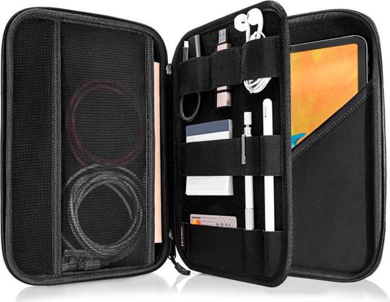 Bên ngoài là vỏ cứng EVA được làm để bảo vệ tốt nhất cho iPad, ngăn chưa có thể đựng iPad Air 10.5 inch 2019, iPad Pro 11 inch 2018, iPad Pro 10.5 kèm theo bàn phím thông minh và Bút Apple mà không bị rơi ra ngoài.