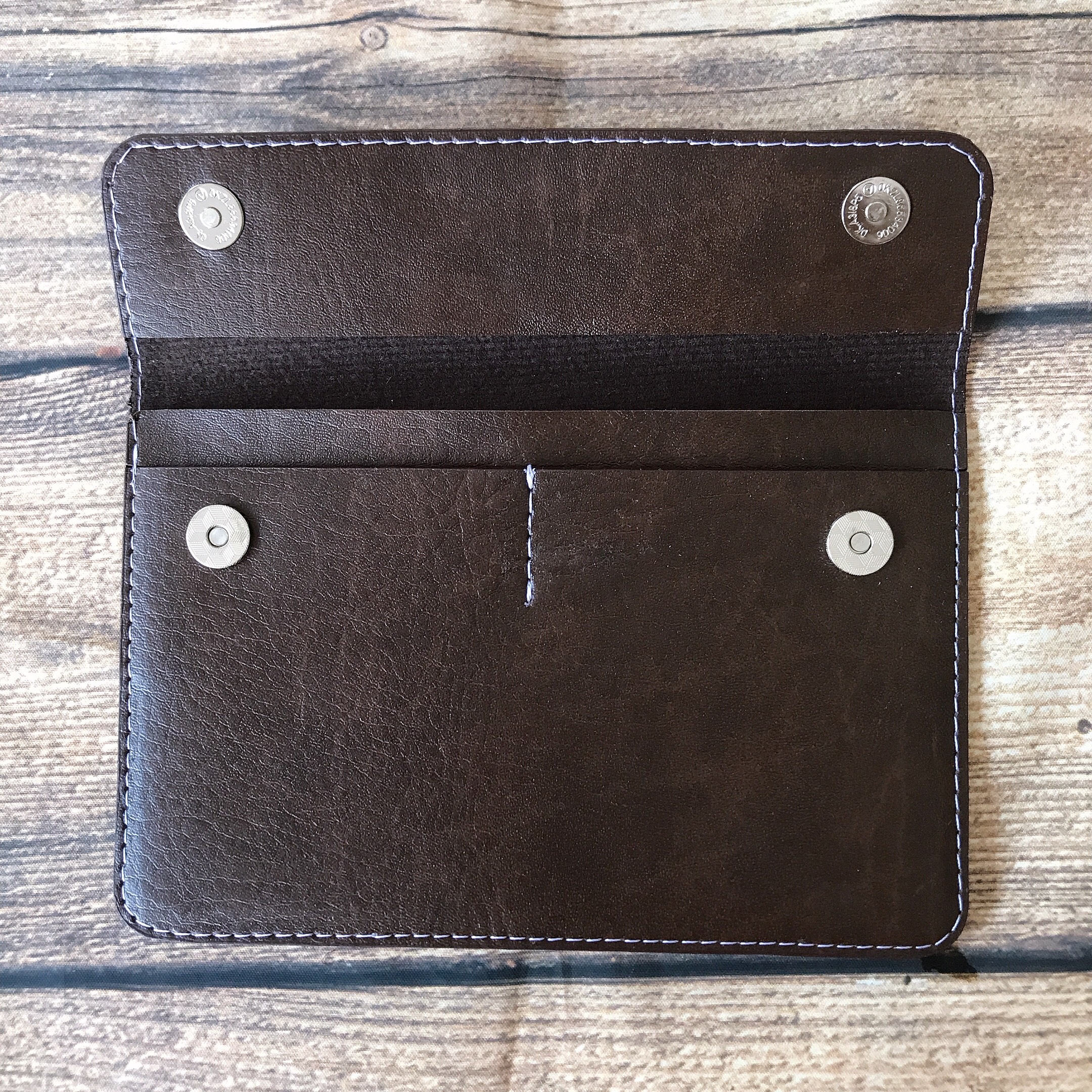 Chất liệu da bền bỉ Ví được làm từ da chất lượng cao không những bền vỉ theo năm tháng mà còn sang trọng, tiện ích. Với những đường chỉ may tinh tế, khóa nam châm chăc chắn không lo giấy tờ bị rơi ra ngoài.