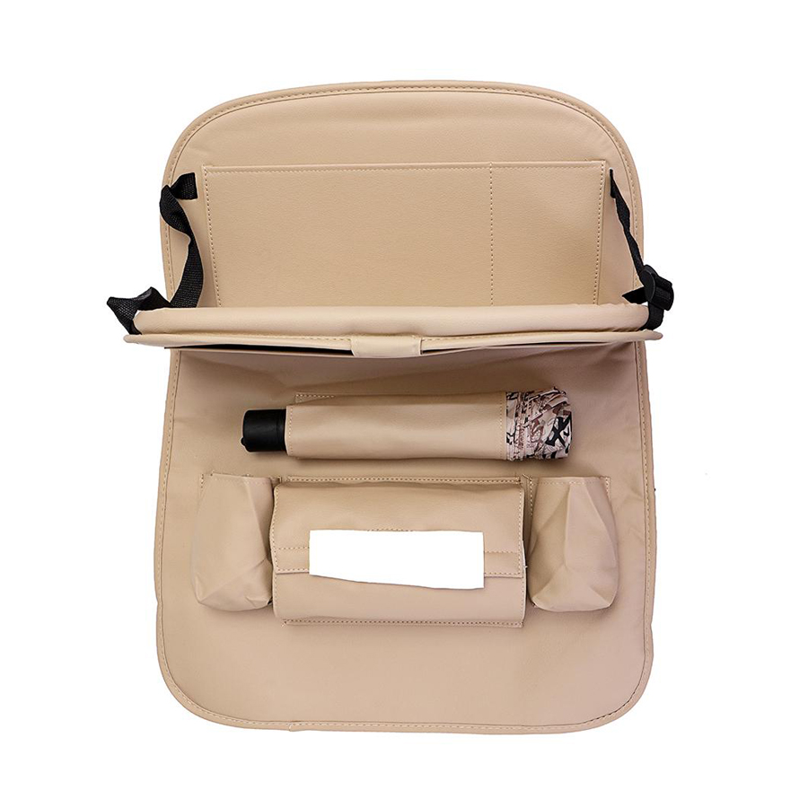 Túi treo đồ ghế xe hơi loại có bàn ăn với chất liệu da tổng hợp, sáng bóng, dễ lau chùi, giúp tiết kiệm không gian xe, thiết kế nhiều ngăn giúp để được nhiều