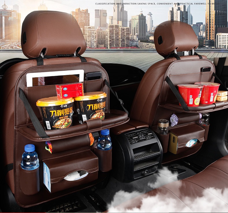 Túi da đựng đồ đa năng treo sau ghế Ô tô, Xe hơi – Tích hợp bàn ăn tiện lợi. Sản phẩm vừa là túi đựng đồ vừa có tác dụng mở ra thành chiếc