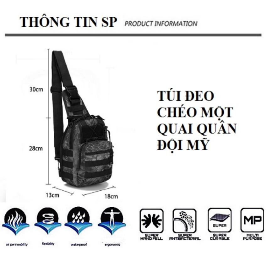 Túi đeo_cặp đeo COMMAN_chiến thuật_dã ngoại Hàng chính hãng COMMAN Model: K317 Chất liệu : Oxford chống thấm nước và chống mài mòn Kích thước : 12 x 26 x 34cm Trọng lượng : 0.65
