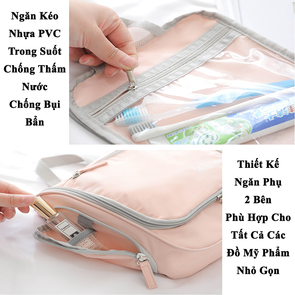 Túi Du Lịch Đựng Mỹ Phẩm Đồ Trang Điểm Cá Nhân KUNBE Kiểu Dáng Năng Động, Trẻ Trung Có Móc Treo Tiện Lợi Bạn đi du lịch hay công tác và có nhiều đồ dùng