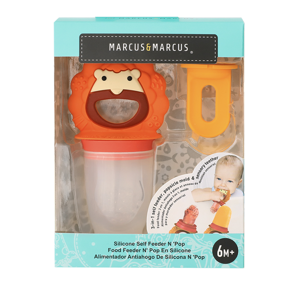Túi nhai ăn dặm chống hóc silicon kèm gặm nướu và nắp làm kem cho bé Marcus & Marcus, từ 6 tháng - Marcus