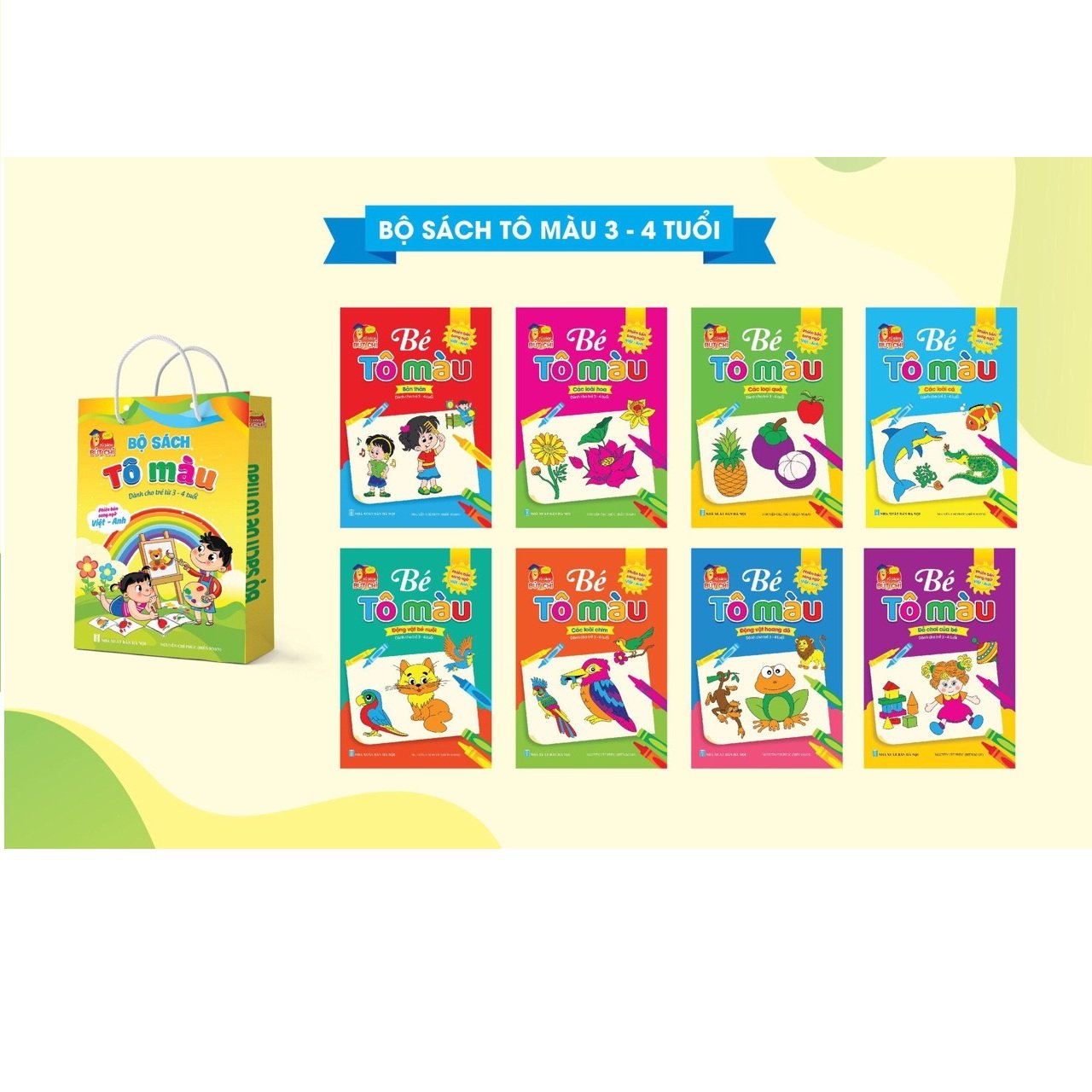 Mua tại TiktokBộ sách tô màu dành cho trẻ 3 - 4 tuổi trở lên gồm có 8 cuốn: