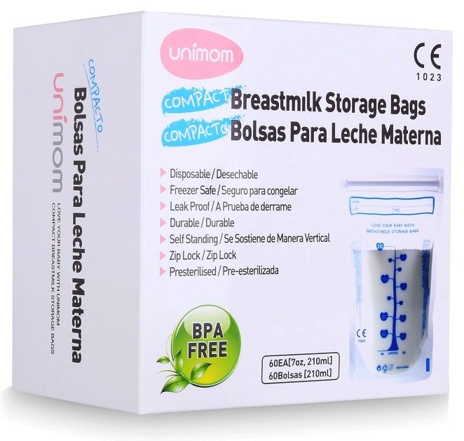 - Túi đựng sữa mẹ (trữ sữa mẹ) Unimom Compact hình dáng gọn gàng, xếp đứng trong tủ lạnh, tủ đông dễ dàng, không rò rỉ, không chảy sữa
