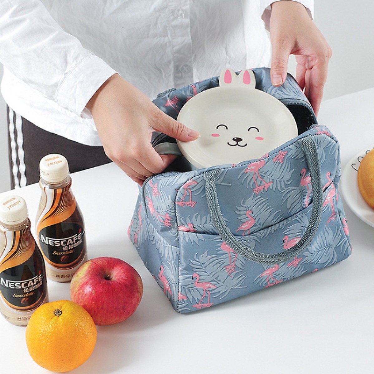 Túi kích thước 22x15x20 cm đựng được nhiều thức ăn hoặc hoa quả mang đi làm đi chơi đều tiện.