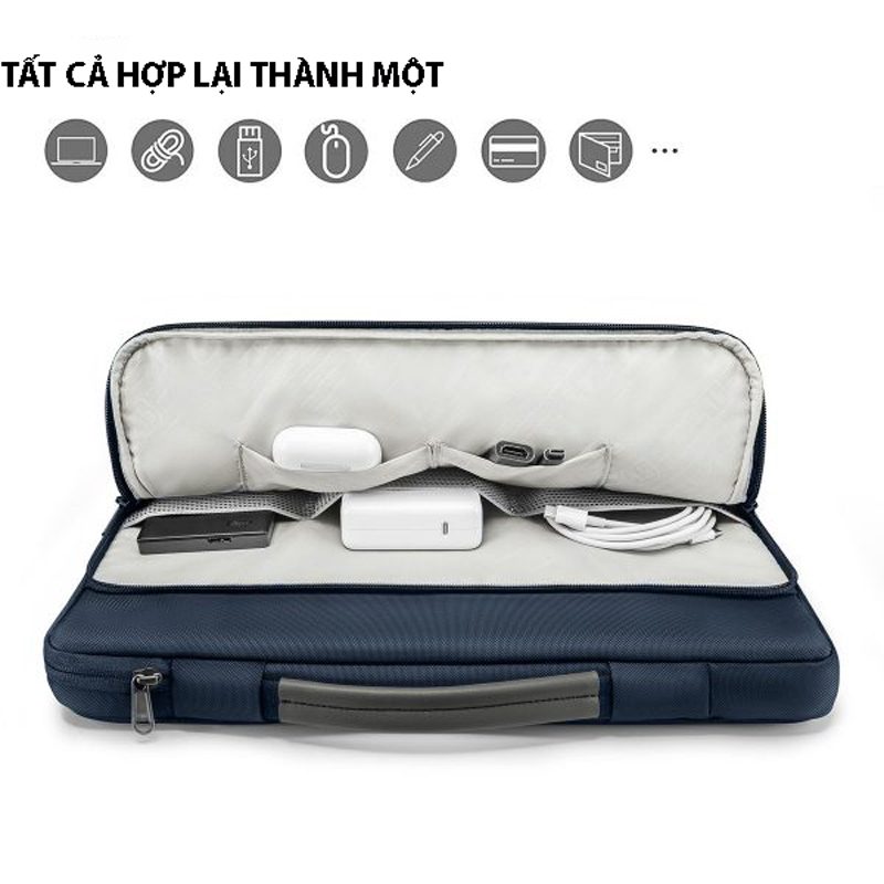 • Ngăn phụ phía trước có nhiều túi nhỏ và đai đàn hồi dùng để cố định những vật nhỏ hơn như sổ tay, pin sạc dự phòng, điện thoại, ví, phone, adapter, cáp, tránh mất nhiều thời gian tìm kiếm. ***Gợi ý tương thích: MacBook Pro 14 inch Retina (A1990 A1707) | Microsoft Surface Laptop 14 inch 4/3 | ThinkPad Chromebook 14 inch | Acer HP Chromebook 14 inch | Notebook | Tablet và các dòng thiết bị, laptop lên đến 14 inch. Công nghệ bảo vệ tiên tiến Túi A14-C02 sử dụng công nghệ tiên tiến CornerArmor của Hoa Kỳ bên trong túi chống sốc có một lớp đệm khí bảo vệ 360°. Đây là điều mà khách hàng tìm đến Tomtoc bởi kết cấu chống sốc hoàn hảo giúp thiết bị của bạn hoàn toàn có thể được bảo vệ khi xảy ra vấn đề va chạm. Thiết kế tinh tế và hiện đại Túi xách chống sốc TOMTOC thiết kế đơn giản và tiện dụng khi bạn mang theo đi học hay đi du lịch. Sử dụng dây kéo YKK hàng đầu của Nhật vô cùng mượt mà, đàn hồi, chắc chắn, nhanh chóng đóng/mở. Logo TOMTOC in nổi bật, sắc nét, gây ấn tượng cho người dùng từ cái nhìn đầu tiên. Túi có thiết kế nhẹ, mỏng, thanh lịch đơn giản với những gam màu trung tính phù hợp với nhiều đối tượng khách hàng. Quai xách chắc chắn, êm ái Túi chống sốc Macbook Pro 14 inch/Air 13 inch 2017 có một quai cầm bằng da PU đàn hồi nổi bật, chắc chắn phía trên túi giúp tiện lợi hơn cho việc di chuyển. Túi xách chính hãng TOMTOC Briefcase gồm 3 màu Xám, Xanh đậm, Hồng để chọn lựa. Tìm kiếm sản phẩm Túi xách Túi xách chống sốc Túi xách TOMTOC TOMTOC TOMTOC Briefcase Briefcase A14-C02 Túi chống sốc có quai Túi chính hãng