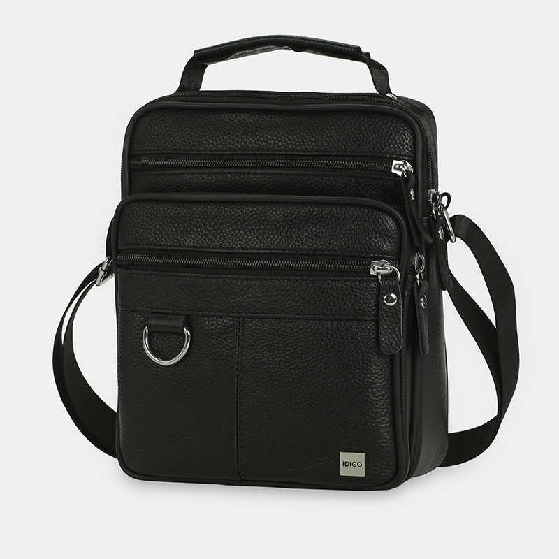 Chiếc Túi xách nam công sở da thật, túi đeo chéo nam du lịch đựng máy tính bảng 7.9 inch phối khoen với thiết kế dáng đứng cùng chi tiết phối khoen mặt trước trên nền