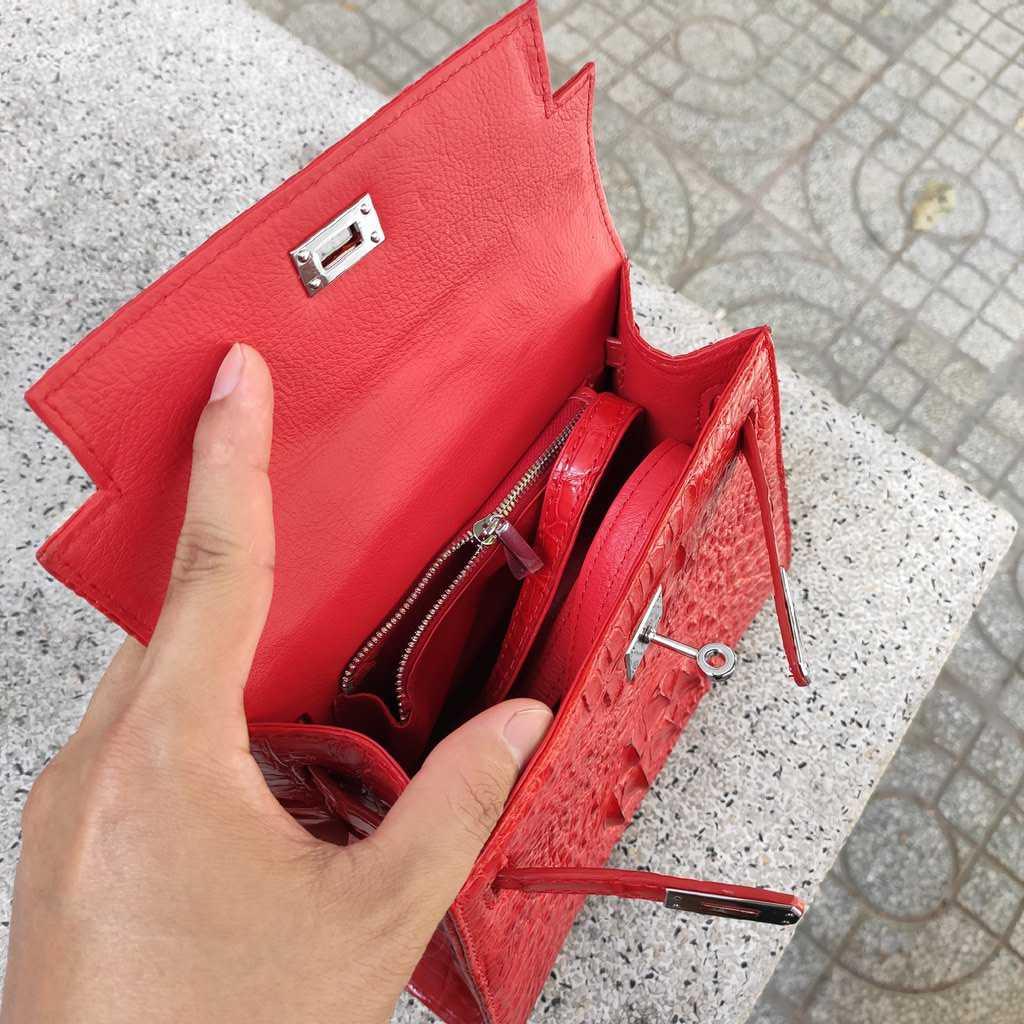 Túi được làm liền mạch nguyên tấm da cá sấu lớn rất đẹp và chắc chắn.