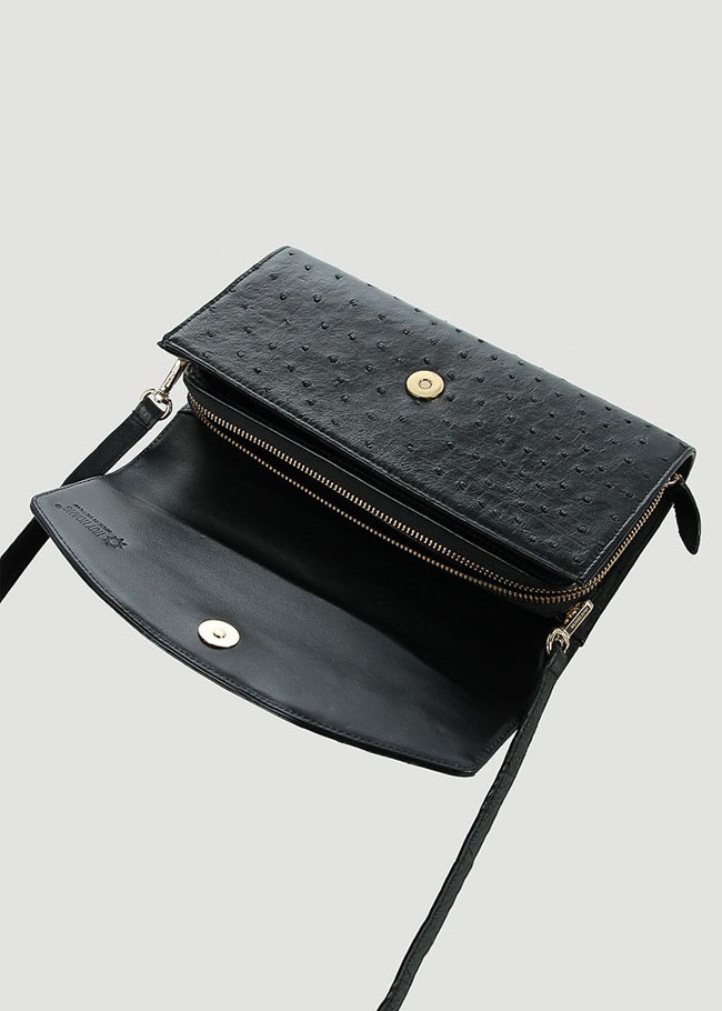 Túi cầm tay nữ Huy Hoàng da đà điểu màu đen, nâu đất, vàng bò, nâu đỏ 6451-52-53-54-55-56