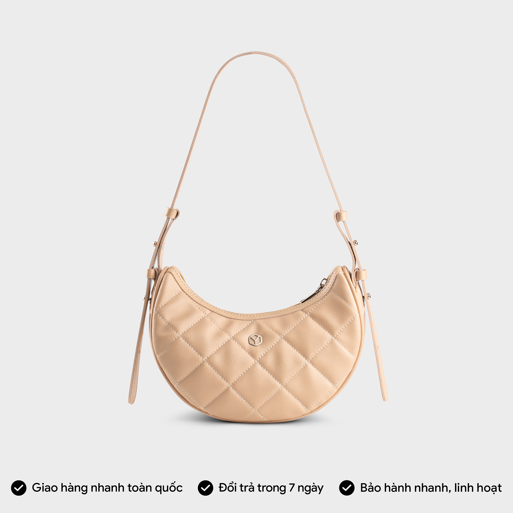 THIẾT KẾ NỔI BẬT - DÁNG CHUẨN FORM - Thiết kế túi hình bán nguyệt nữ tính, hiện đại, cùng chất liệu da chống trầy, chống bám nước. - Khóa gài trang trí cách