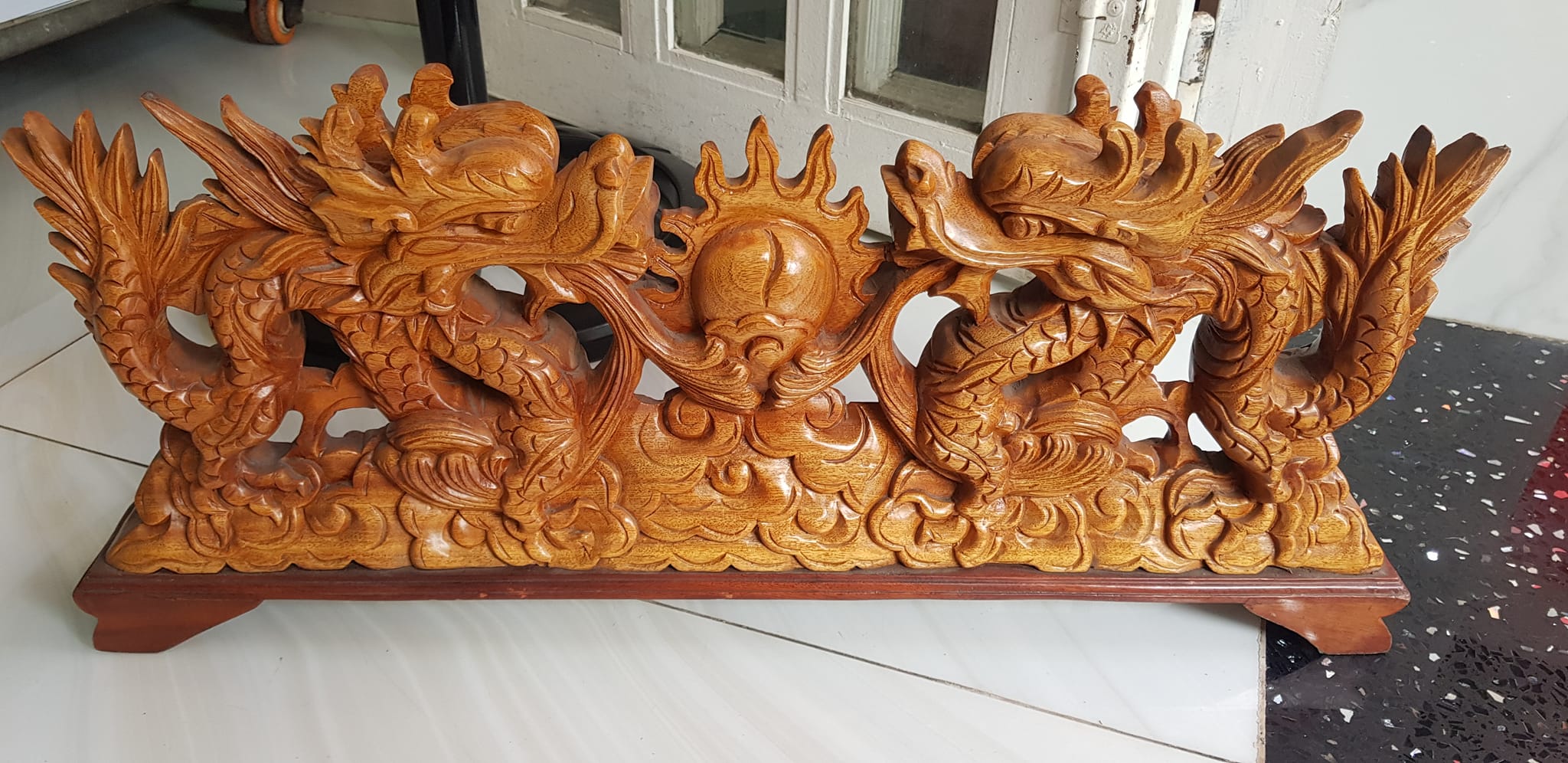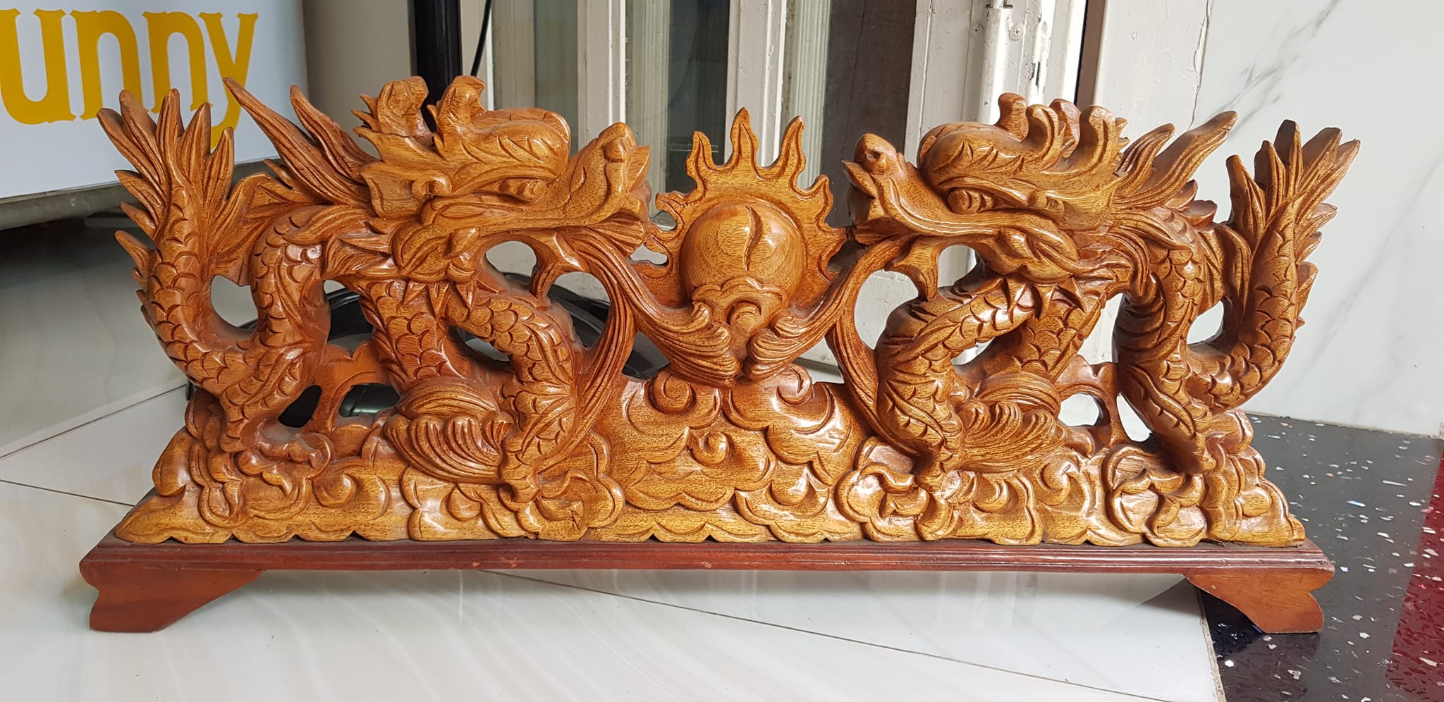 ✨Tượng 2 Con Rồng Lượn Gỗ Gõ màu đỏ size Dài 64cm x Cao 17cm x Sâu 7cm 2 con rồng lượn phun lửa biểu tượng cho sức mạnh của người đứng đầu người lãnh đạo công ty, người chủ trong gia đình thật trưng phòng khách , bàn làm việc to quà tặng ý nghĩa ạ