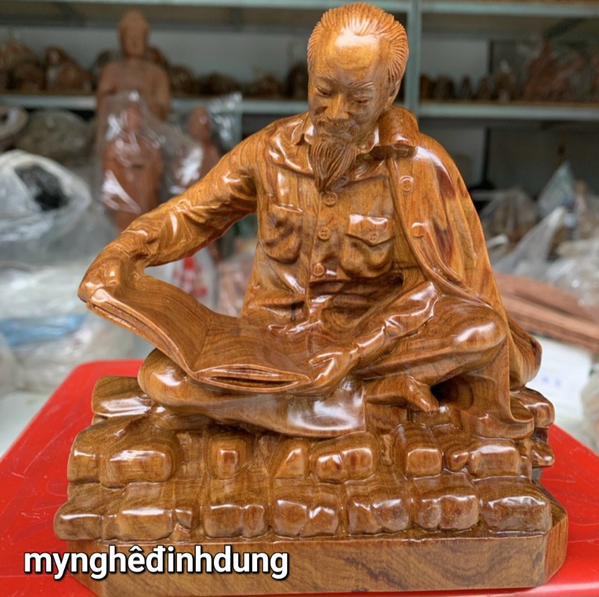 Mua tại Tiktok_ Tượng bác hồ đọc sách được làm bằng chất liệu gỗ bách xanh liền khối tự nhiên 100%