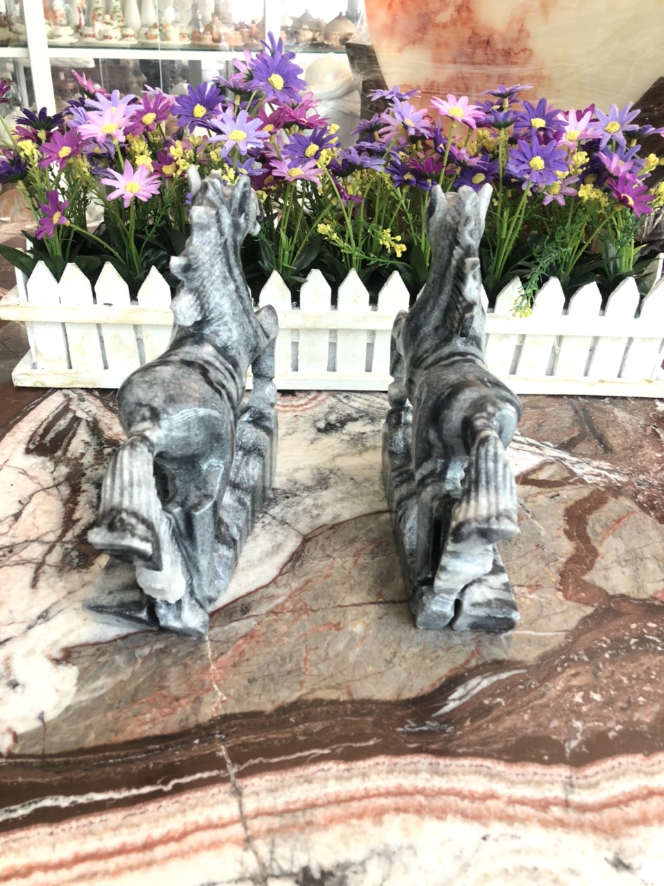 ✨Tượng cặp Ngựa phong thủy công danh tài lộc đá cẩm thạch vân đen - Dài 20 cm