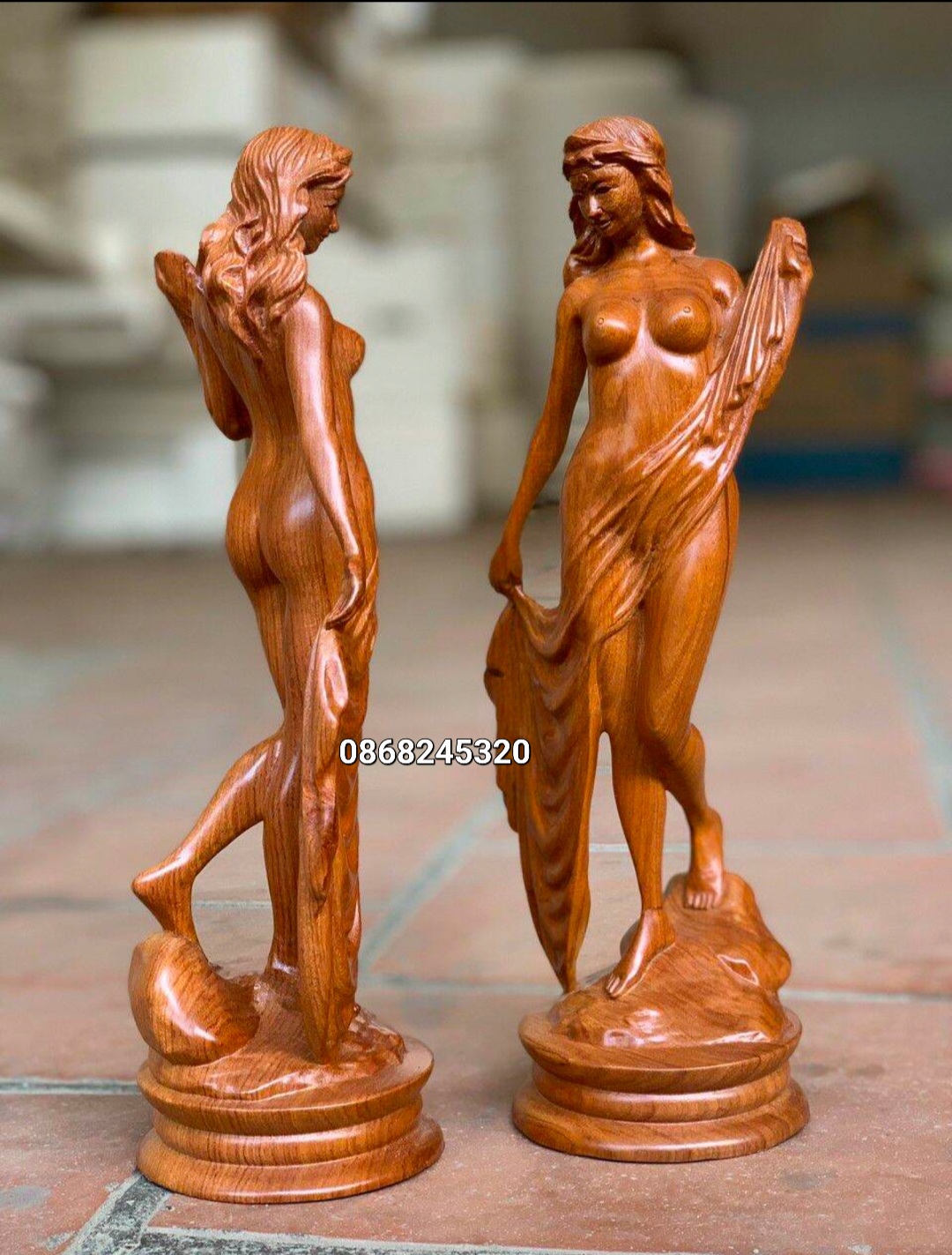 _ Tượng được điêu khắc trạm trổ vô cùng tỉ mỉ ,tinh sảo kỳ công .Đi hầu hết tất cả mọi chi tiết góc ngách nội dung hoa văn của tượng đều được gọt tỉa chỉnh sửa sắc nét hoàn toàn bằng tay thủ công .Đồng thời tượng được kiểm định kỹ lưỡng khắt khe ,Như cho vào thẩm sấy cho gỗ khô kiệt .Mục đích trống dập nứt vênh mo mối mọt ,kết hợp với trà nhám ,đánh giấy giáp nhiều nước sờ mát lạnh .Song cho vào phun lót làm bóng mờ để giữ lại mầu sắc vân gỗ tự nhiên .Tượng cô gái thiếu nữ được làm và hoàn thiện do bàn tay khối óc tài hoa .Từ những người thợ giàu kinh nghiệm ,trong làng nghề truyền thống .Chính vì thế tượng cô gái nghệ thuật bằng gỗ hương đá đã đáp ứng đầy đủ mọi tiêu trí cần thiết như ( Đẹp bền rẻ ) Thẩm mỹ nghệ thuật với chất lượng tuyệt vời