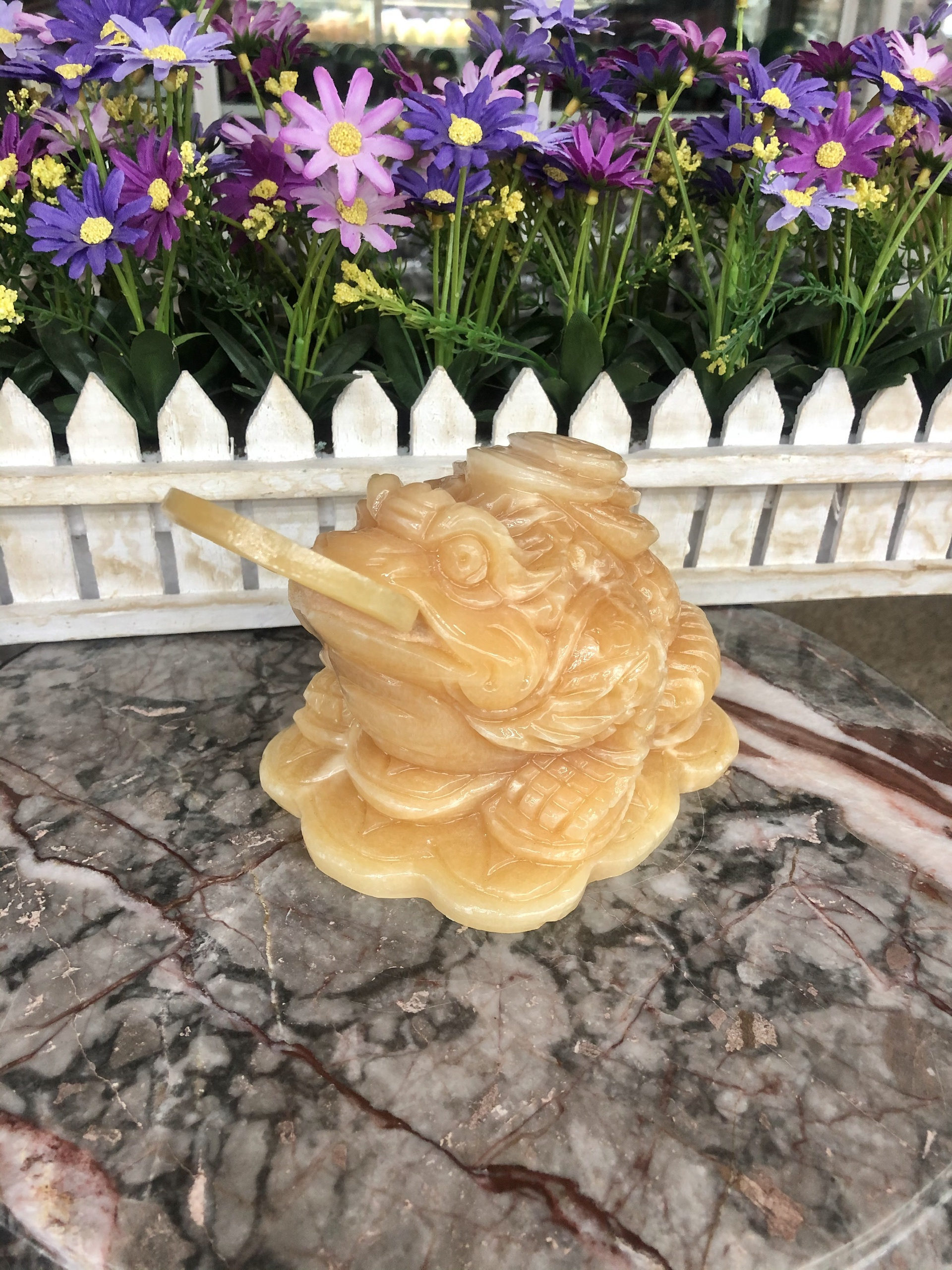 Chất liệu: Đá vàng cà rốt Kích thước: Dài 20 cm x Rộng 11 cm x Cao 11 cm Khối lượng: 3 kg Thiềm Thừ được người xưa gọi là Cóc tài lộc, Cóc ba