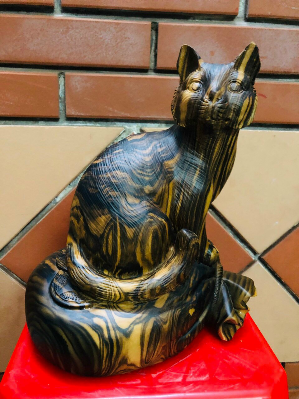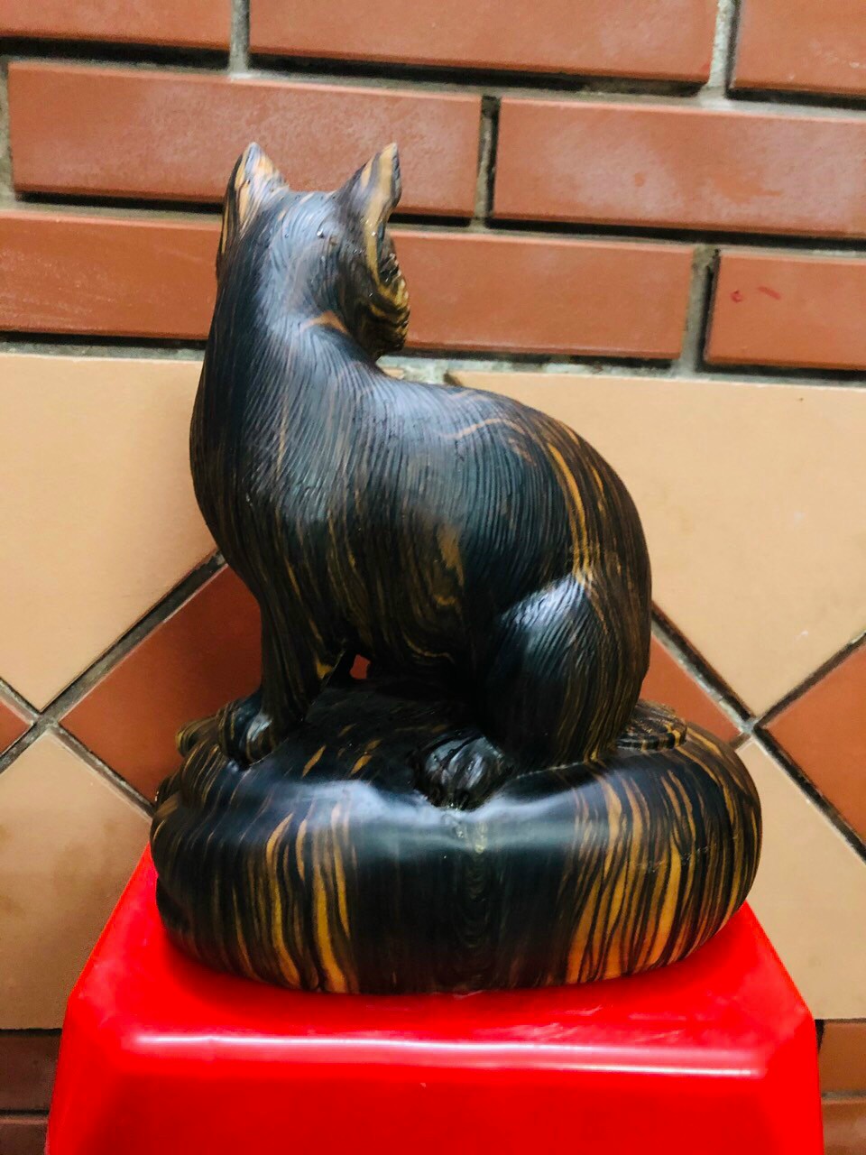✨Tượng con mèo điêu khắc bằng gỗ mun kt 30×26×17cm