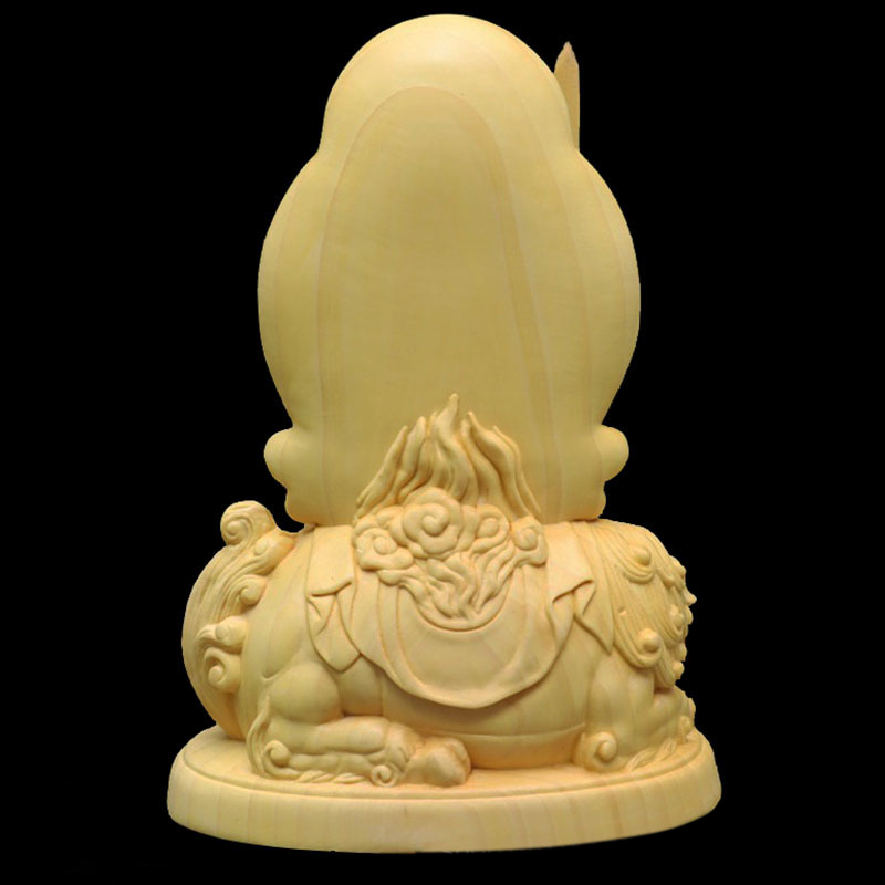 Tượng để xe ô tô phật Văn Thù Bồ Tát bằng gỗ Hoàng Dương V550 được làm 100% từ gỗ cây Hoàng Dương