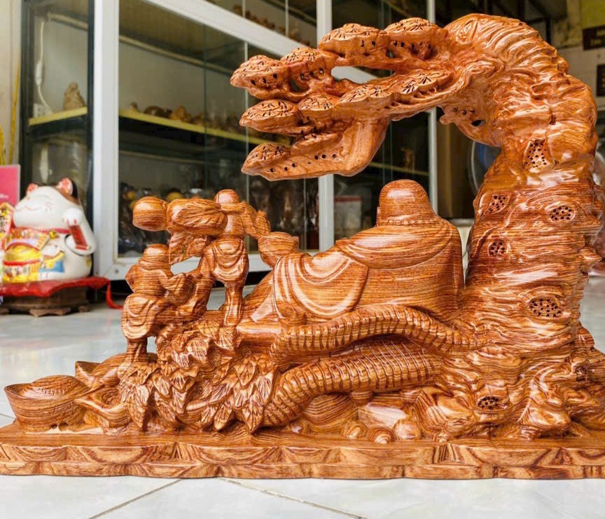 Tác phẩm di lạc ngồi dưới gốc tùng #điêukhắcgỗ #tượng_phong_thủy
