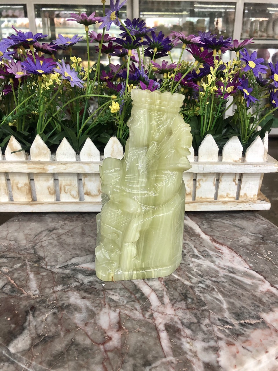 Chất liệu: Đá ngọc Onyx Kích thước: Dài 14 cm x Rộng 11 cm x Cao 20 cm Khối lượng: 4,6 kg - Thần Tài là vị thần trông coi tiền tài, vàng bạc, mang