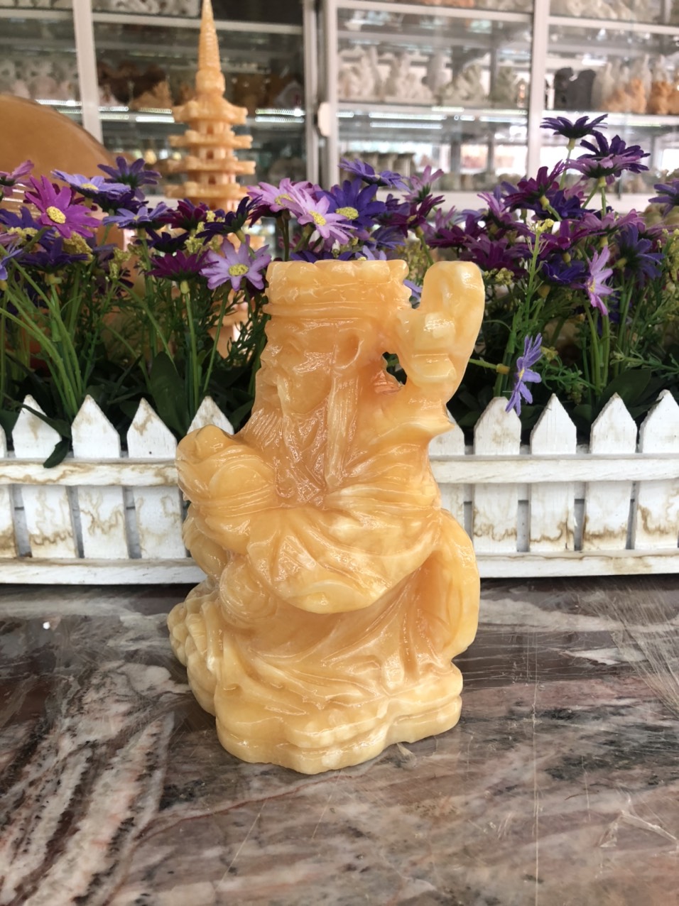 Tượng Phật Quan Âm Đá Lưu Ly Vàng Mới để trong xe hơi hoặc để bàn cao 12cm đk 7cm đế 5cm Mệnh Kim mệnh Thổ mệnh Thủy ạ *** Tượng Phật Quan Âm Đá