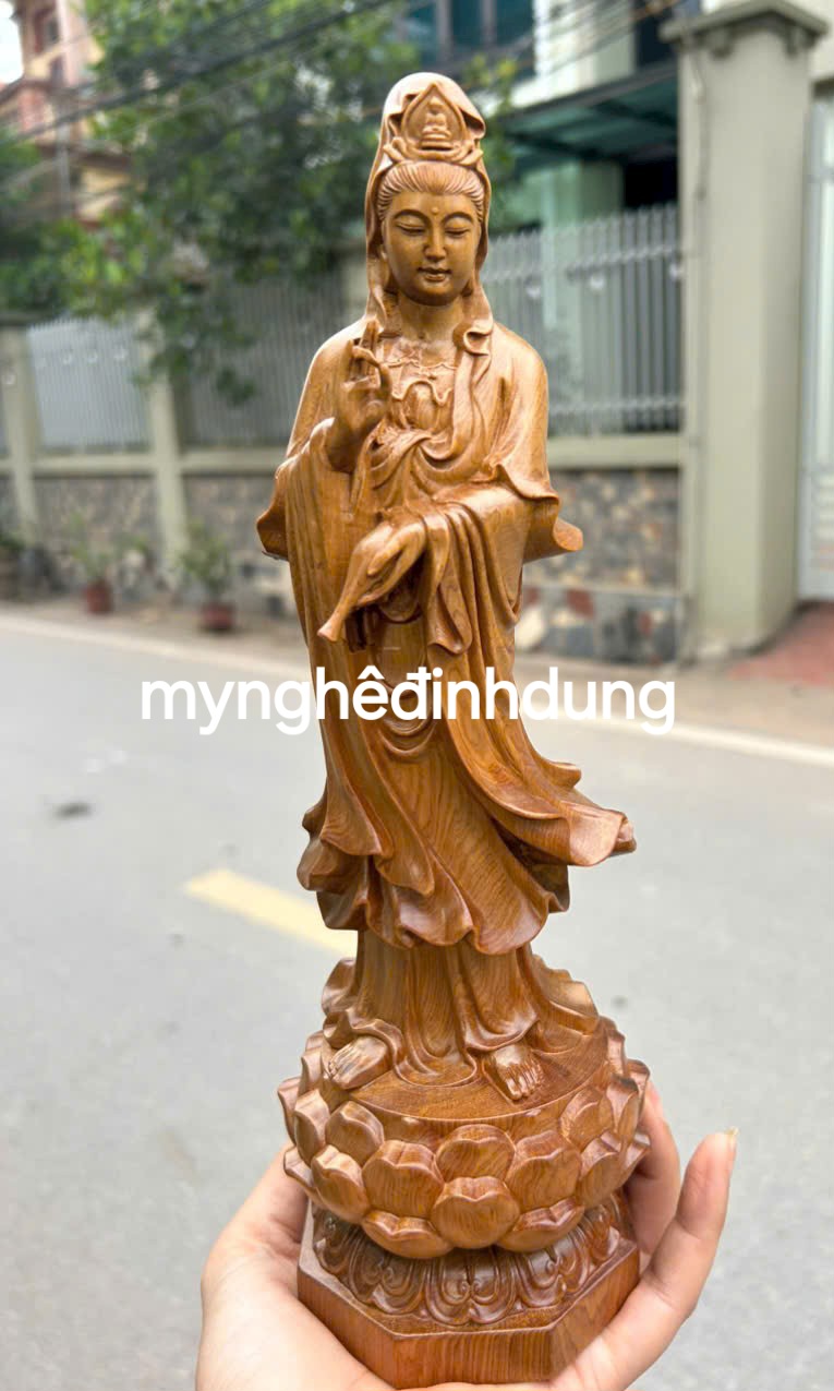 Mua tại TiktokTượng phật bà quan âm bồ tát được làm bằng chất liệu gỗ bách xanh liền khối tự nhiên 100% Kt cao 30x9x9cm _ Tượng được chạm khắc tỉ mỉ tinh xảo kỳ công.Đi hầu hết tất cả mọi chi tiết góc ngách nội dung hoa văn của tượng đều được gọt tỉa chỉnh sửa sắc nét hoàn toàn bằng tay thủ công truyền thống.