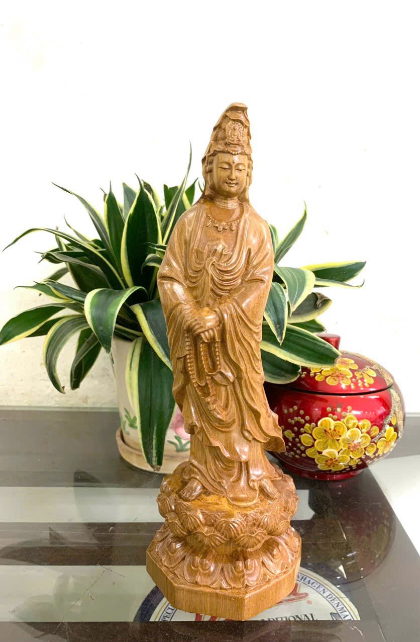 Tượng phật bà Quan Âm 20cm gỗ bách xanh | Phật mẹ Quán Thế Âm bằng gỗ siêu đẹp