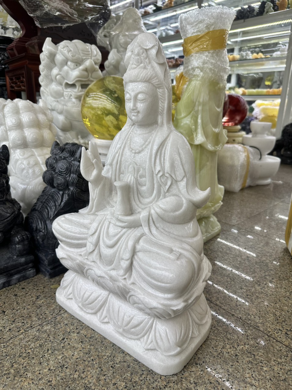 🙏 Tượng Quan Âm Bồ Tát Ngồi Bột Đá Đá Cẩm Thạch 🙏 #phápduyênshop #tuongphat #quantheambotat