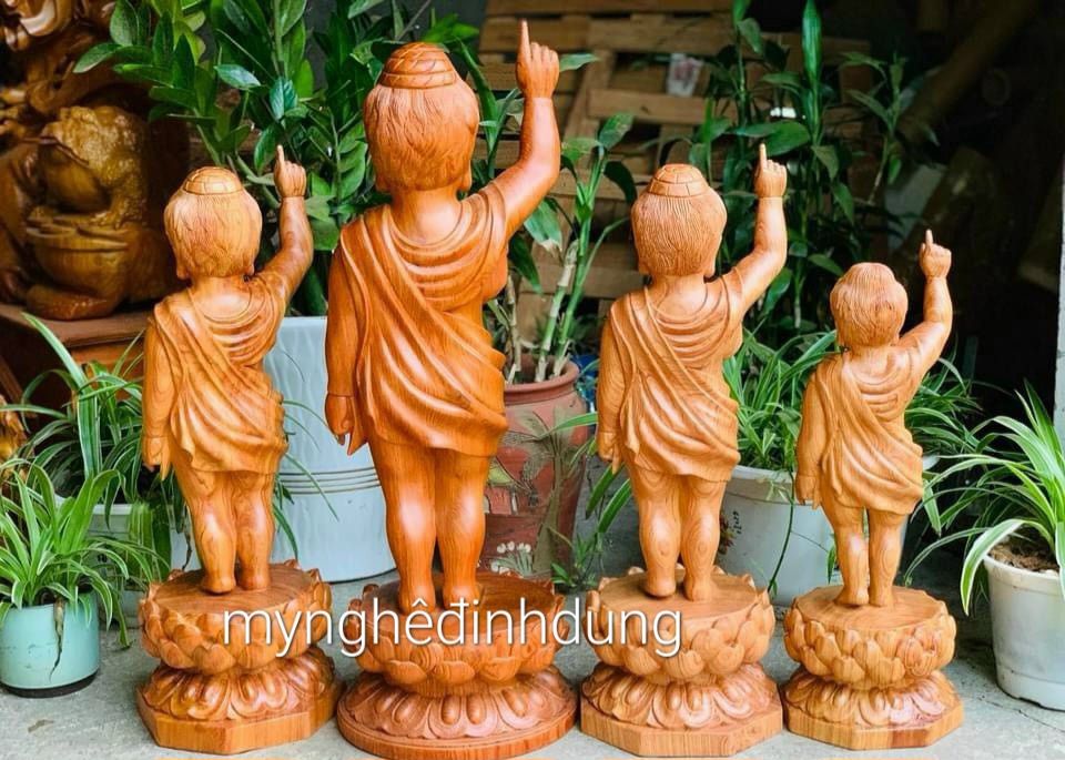 Tượng phật đản sinh được làm bằng chất liệu gỗ hương đá liền khối tự nhiên 100% Kt cao 40×15×15cm _ Tượng được chạm khắc gọt tỉa vô cùng ti mi tinh xảo kỳ công. Đi hầu hết tất mọi chi tiết góc ngách nội dung hoa văn của tượng đều được gọt tỉa chỉnh sửa sắc nét hoàn toàn bằng tay thủ công , TƯỢNG CHẾ TÁC LÀM VÀ HOÀN THIỆN TỪ BÀN TAY KHỐI ÓC TÀI HOA VÀ NHỮNG NGƯỜI THỢ CÓ TAY NGHỄ CAO TRONG LÀNG NGHỄ TRUYỀN THỐNG