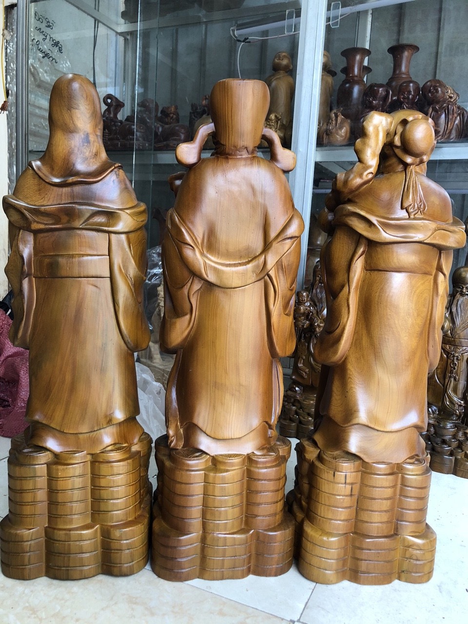✨Tượng phật tam đa phúc lộc thọ bằng gỗ bạch xanh thơm nức kt cao 50×13×15