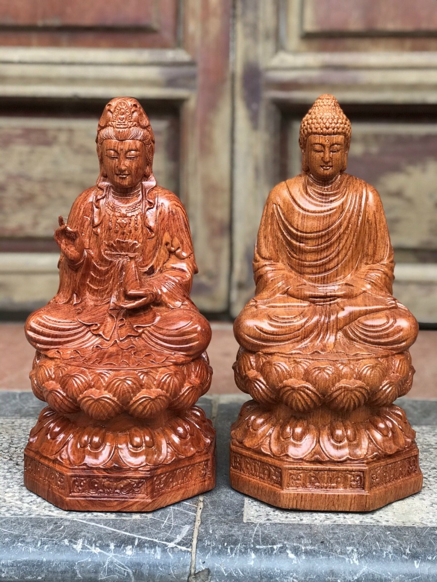 Tượng phật a di đà cao 40cm chất liệu gỗ hương đá