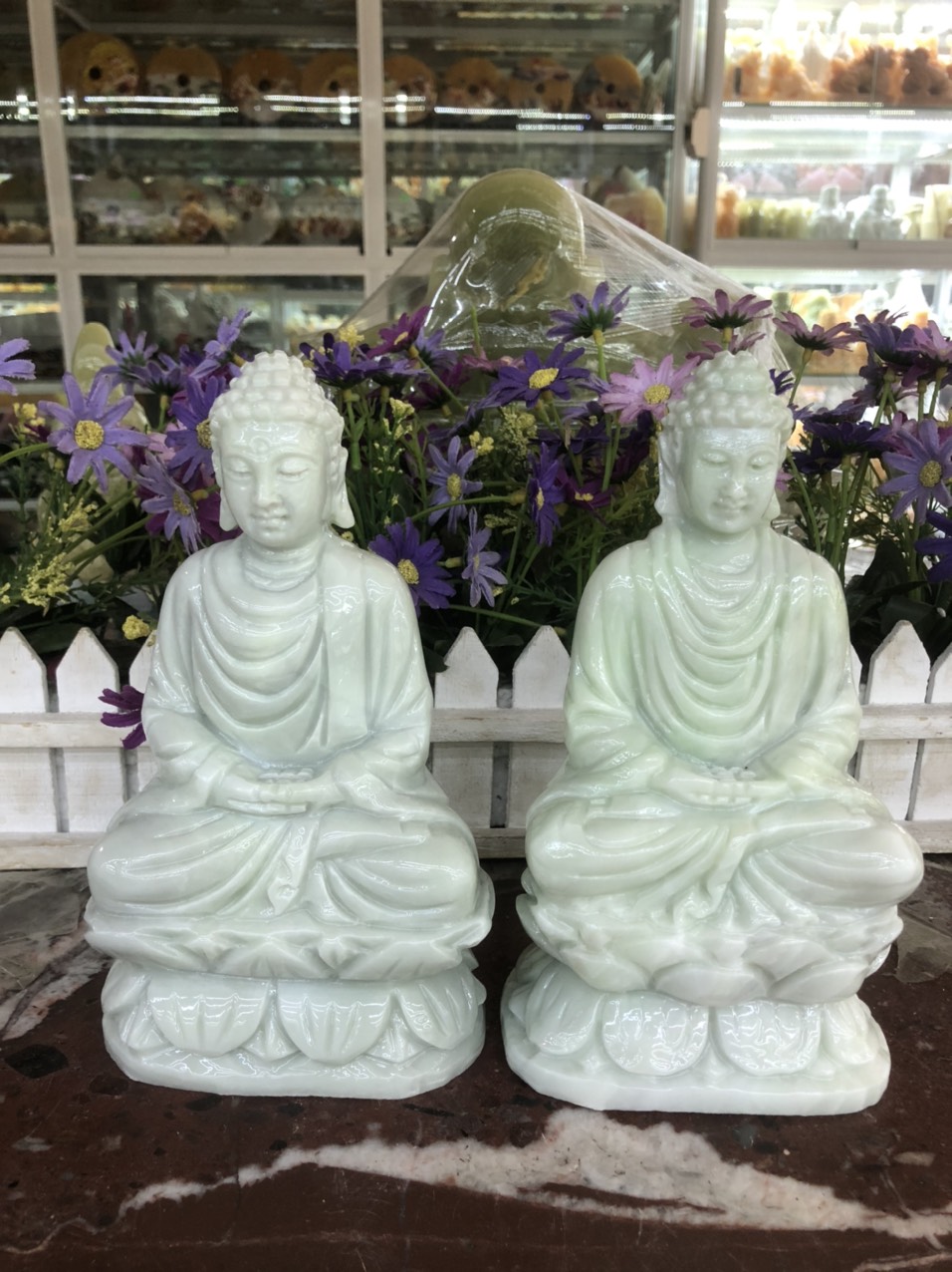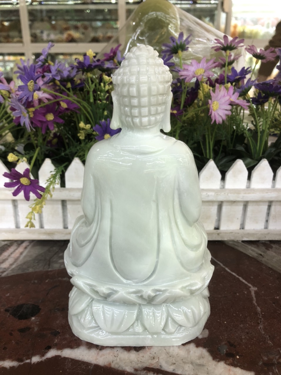 ✨Tượng Phật Thích Ca Mâu Ni ngồi đài sen đá trắng xanh - Cao 20 cm