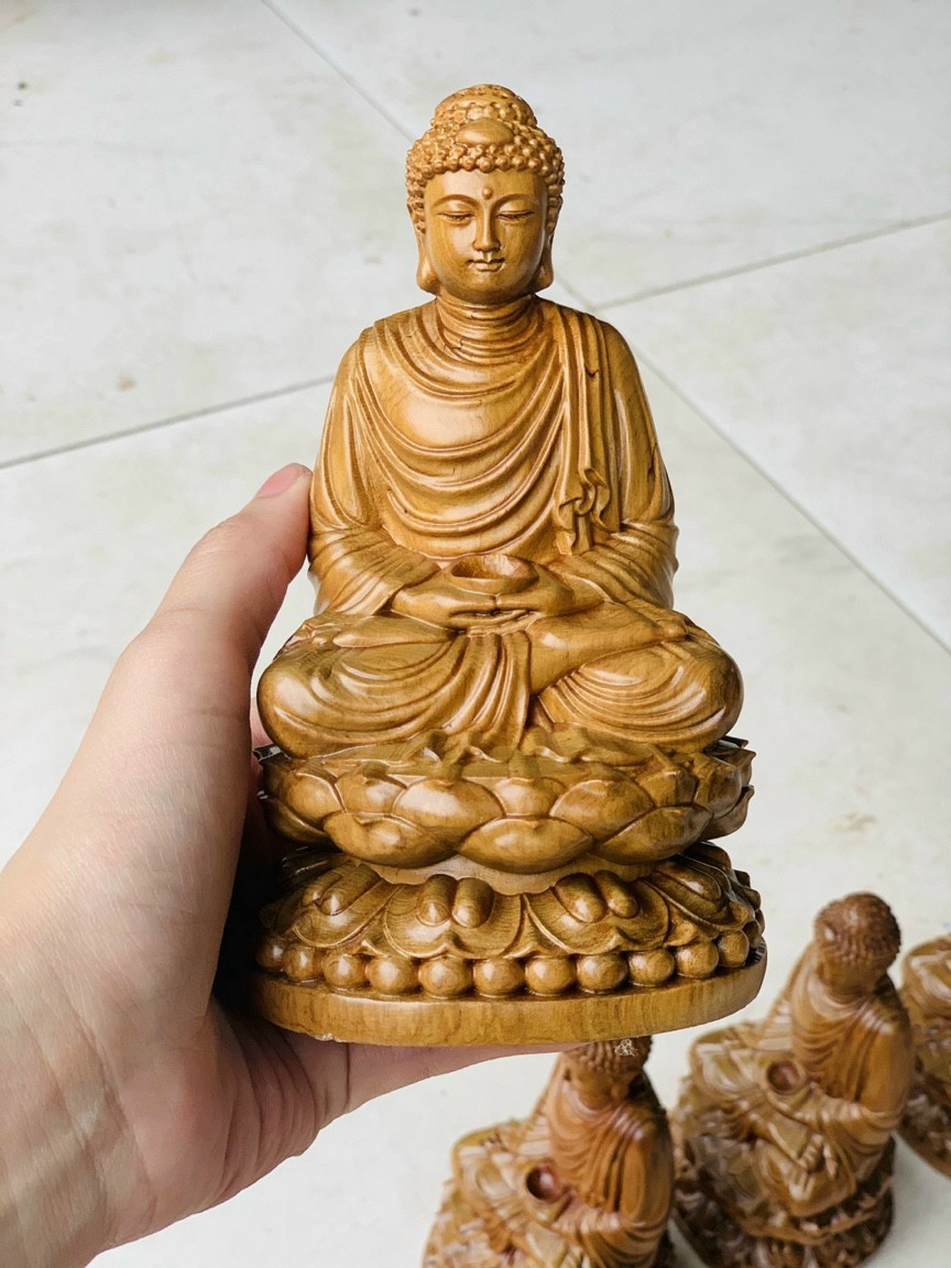 ✨Tượng phật thích ca mini bằng gỗ bách xanh kt 15×9×8cm