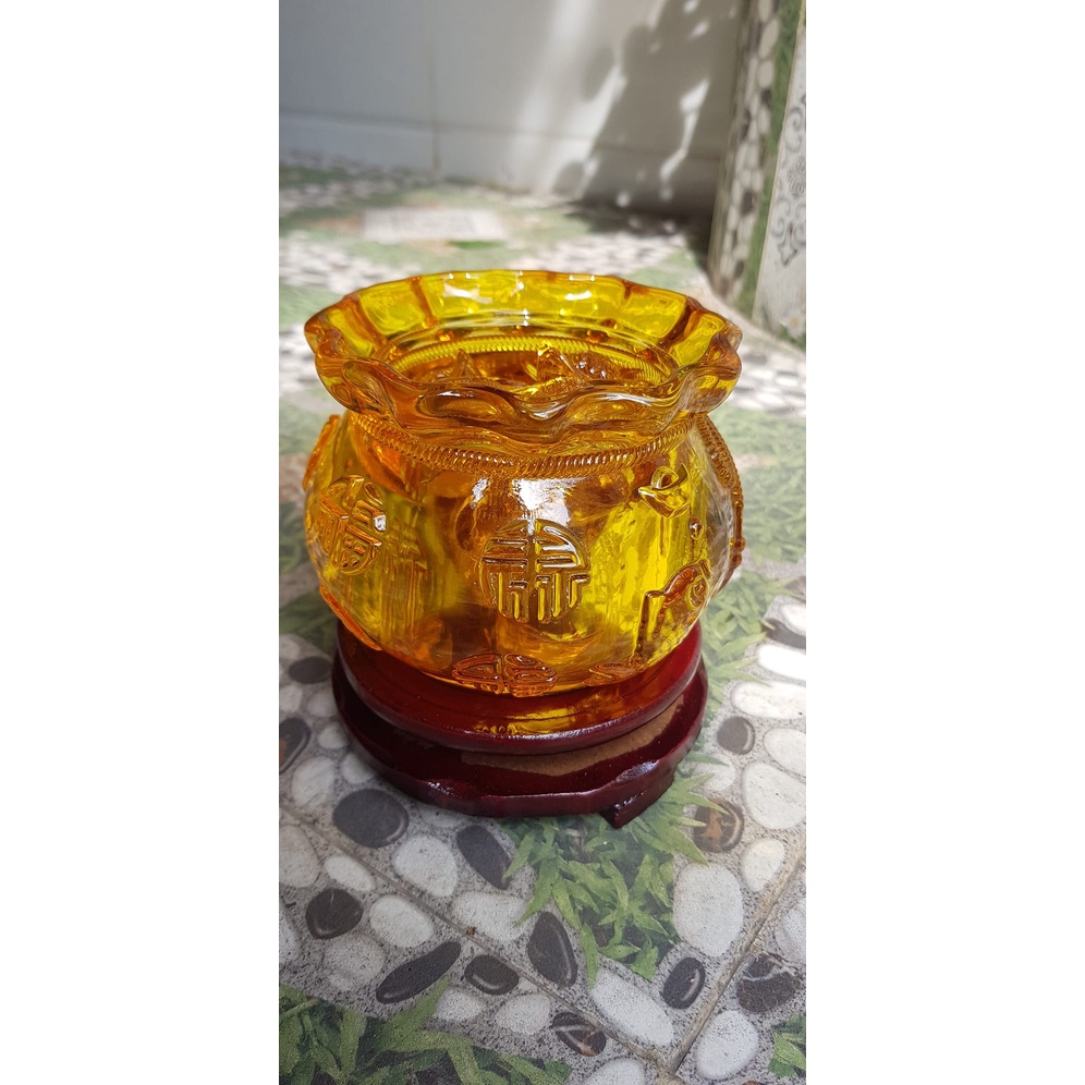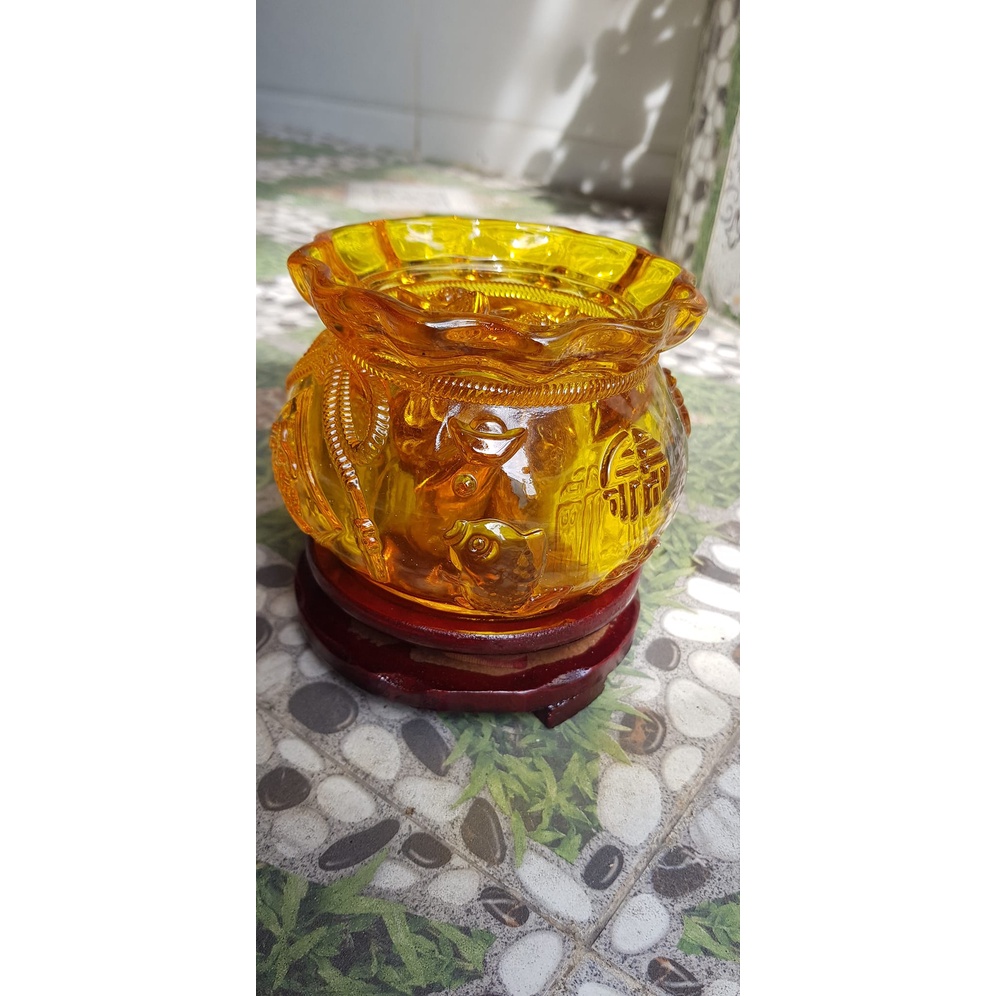 Tượng Phong Thủy Thố tụ tài to mới miệng kiểu màu vàng anh tài lộc 20 thỏi xiền vàng đá lưu ly tự nhiên đế gỗ size lớn đk 13cm x Cao 13cm cả đế x thố cao 9cm Hợp Anh Chị Mệnh Kim Thổ Thuỷ đặt bàn làm ...